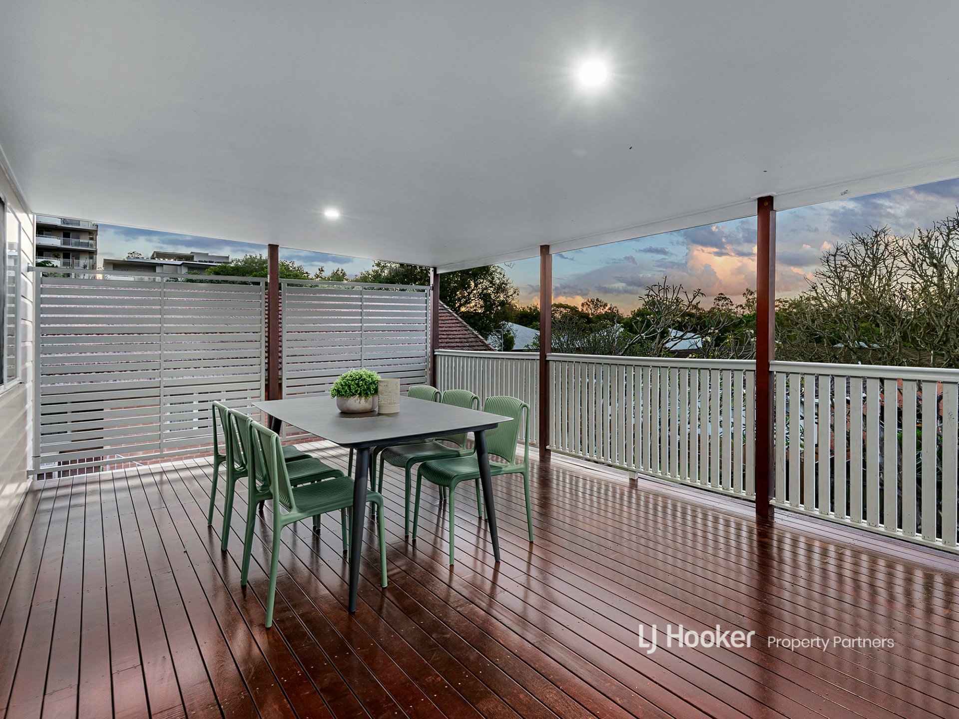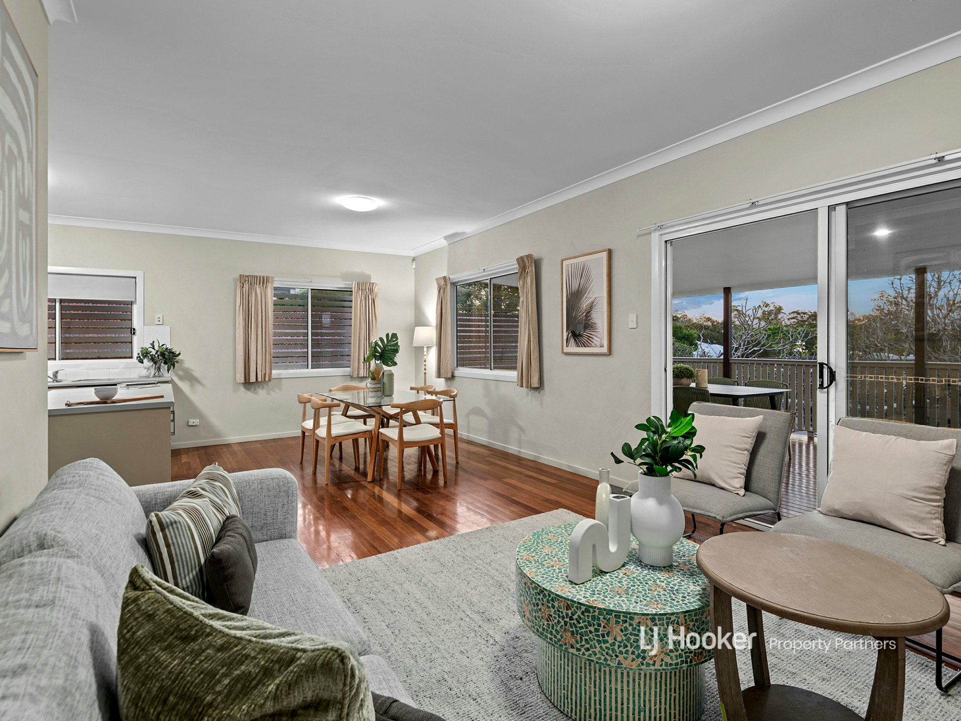 - Open-plan kitchen/living/dining room extending out to a sky-high rear timber balcony