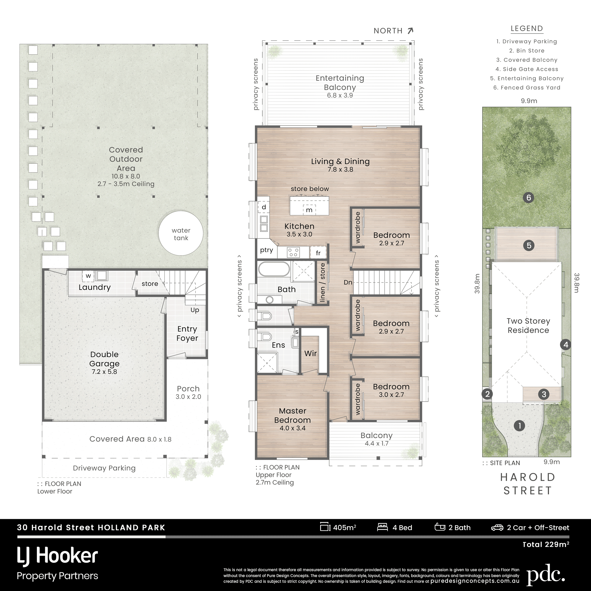 - Bonus covered outdoor area under the main house with ceiling heights from 2.7 to 3.5m