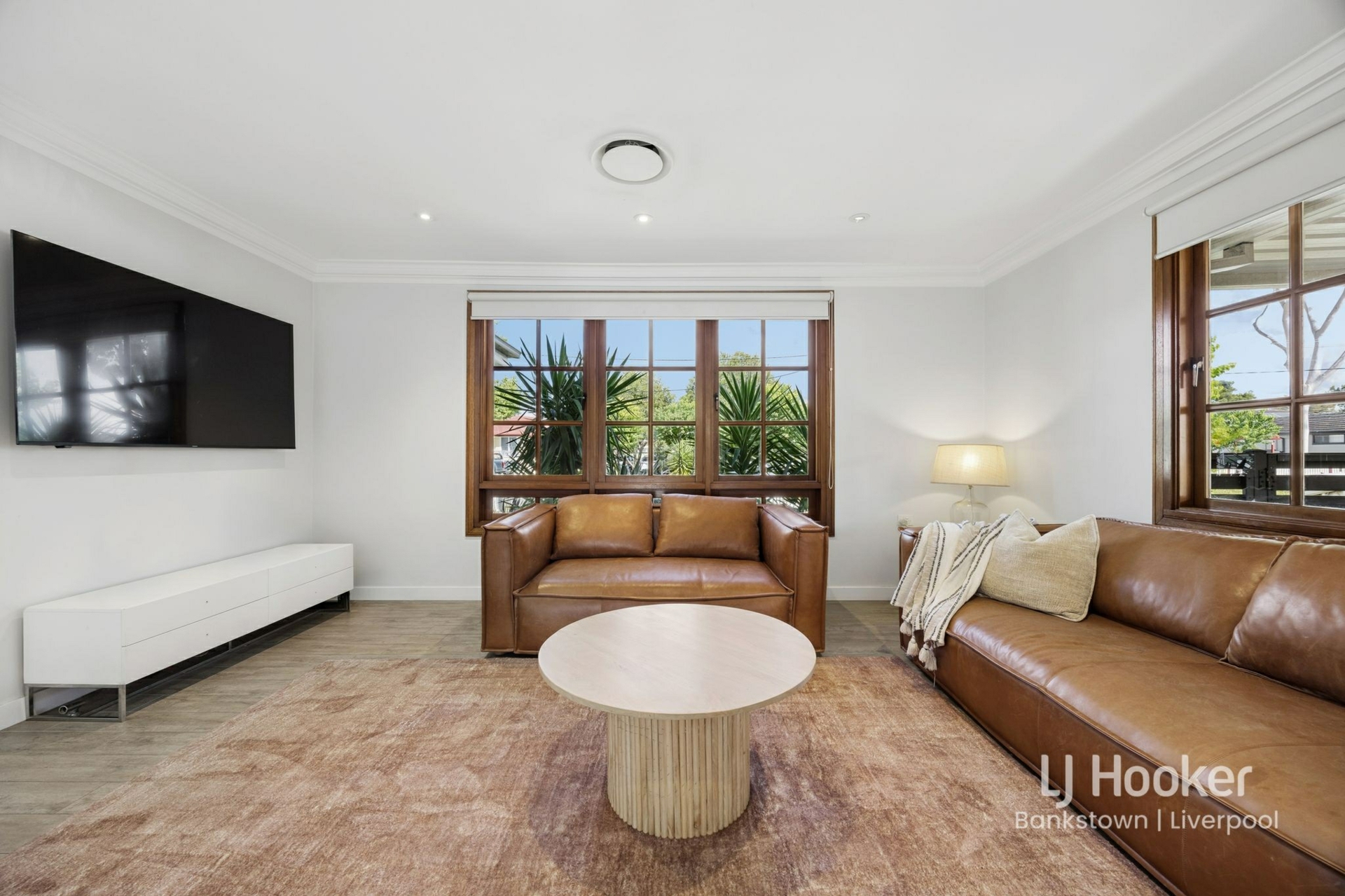 - Timber-look tiled flooring throughout