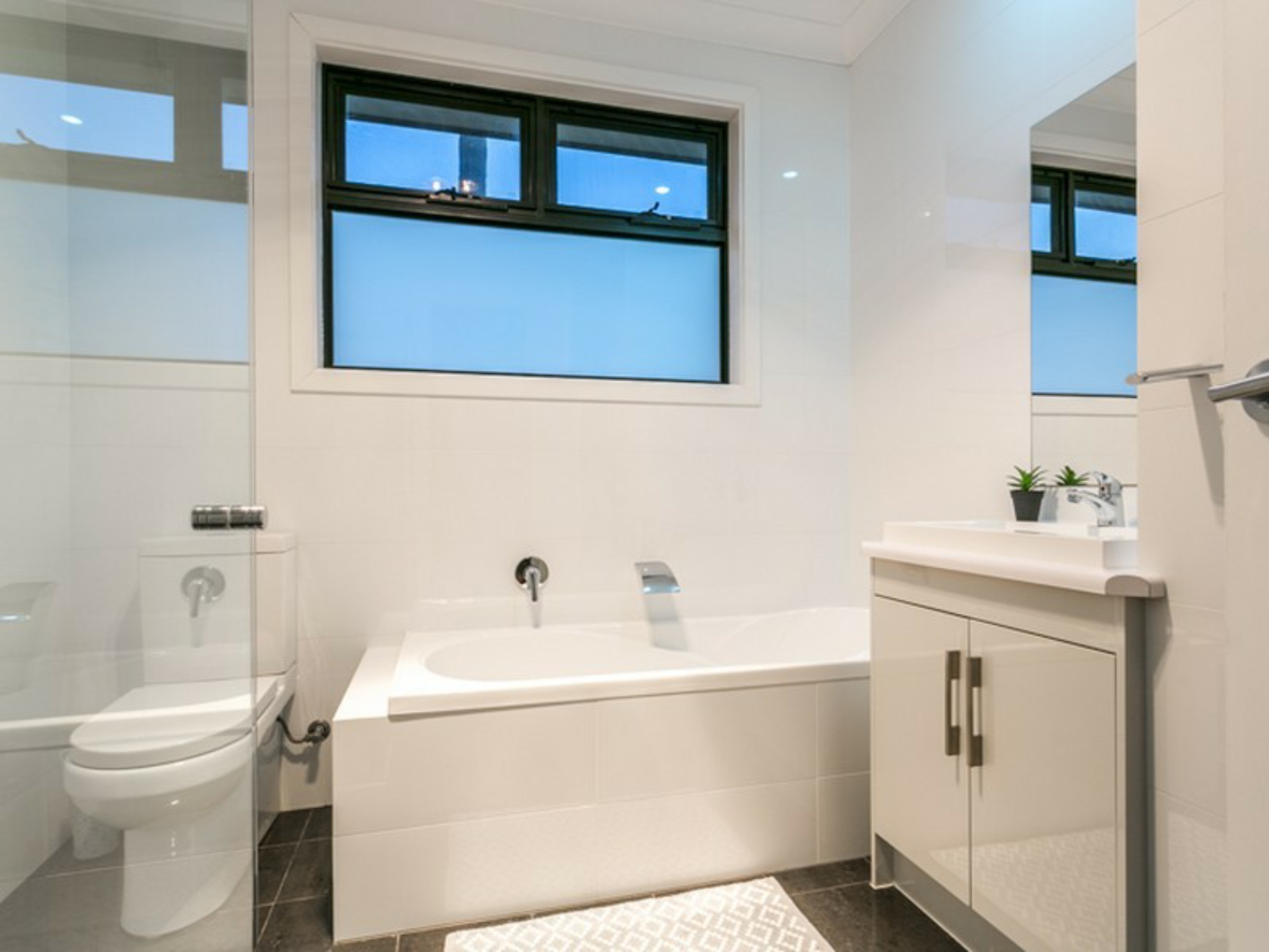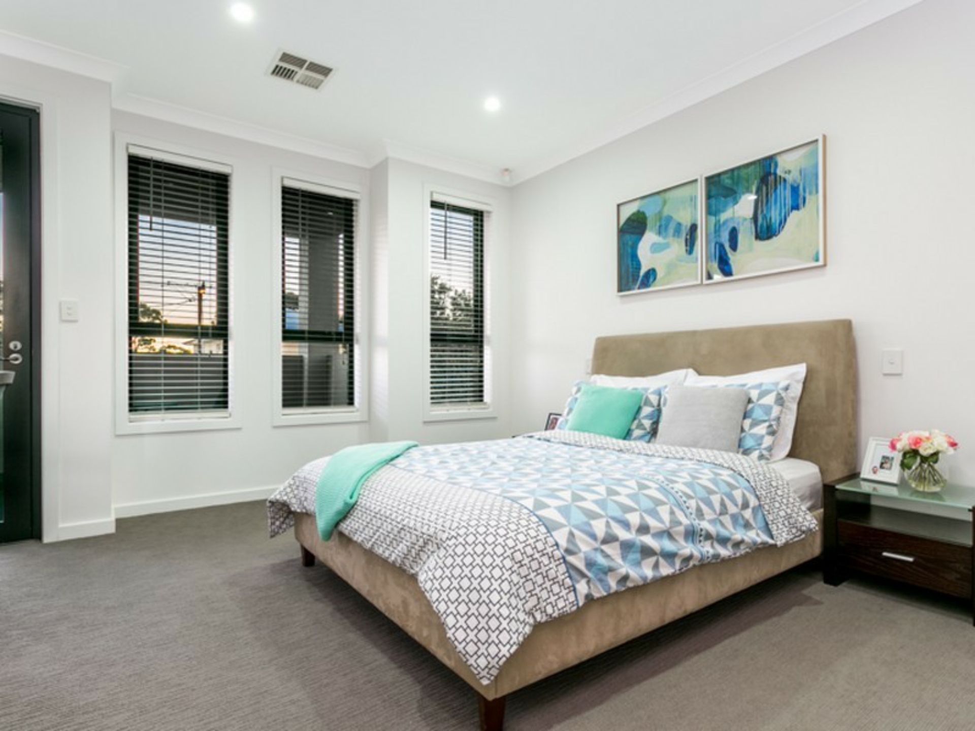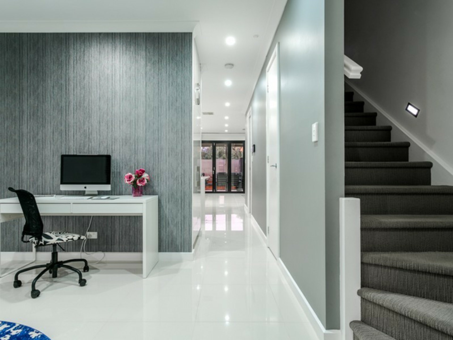 Upstairs you will enjoy three outstanding bedrooms all with walk-in robes whilst the superior master bedroom also enjoys a sparkling and spacious en-suite and access onto the large balcony. Both bathrooms are decorated in a crisp white and grey theme with porcelain tiles to ceiling height and frameless shower alcoves.
