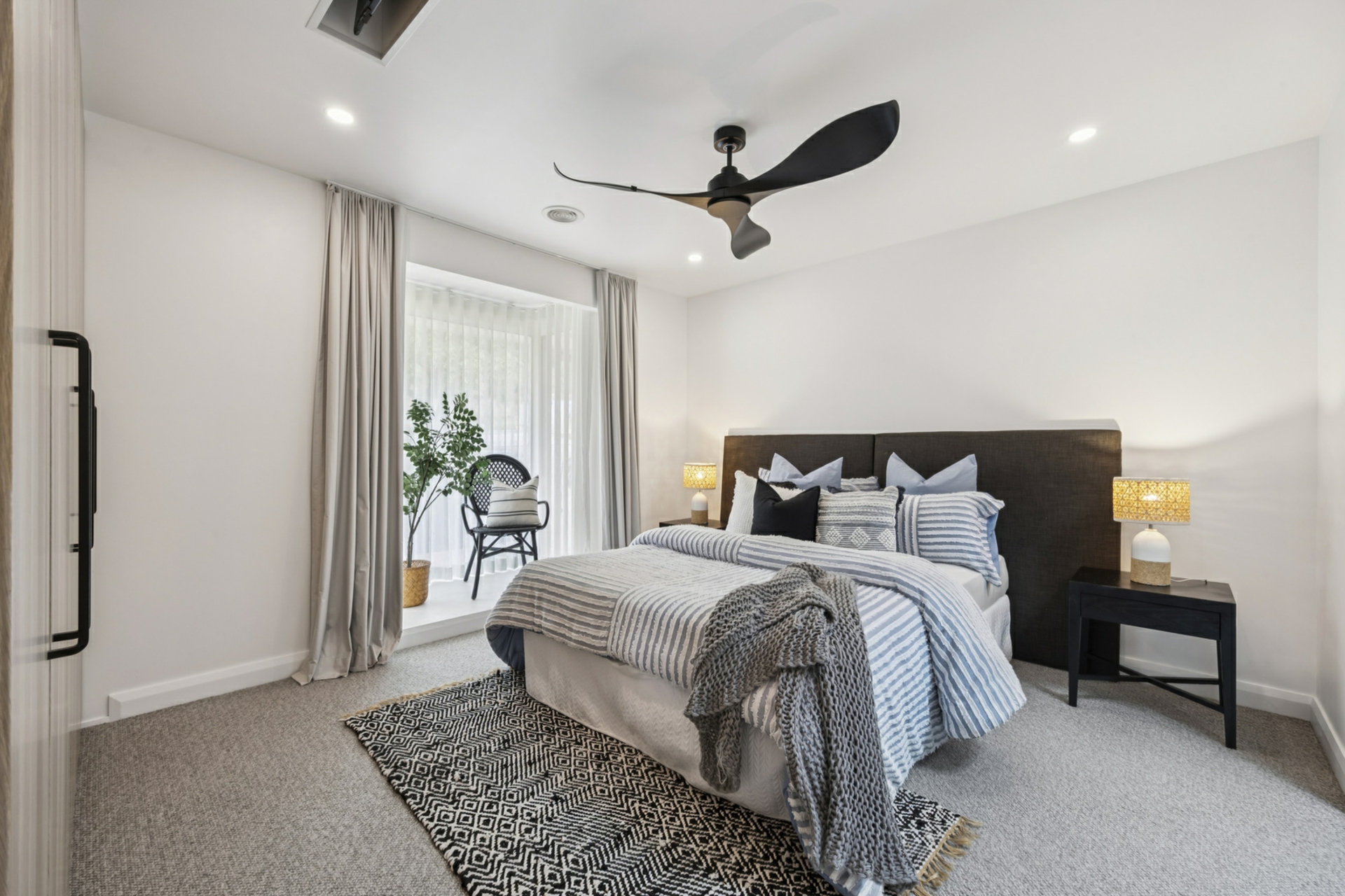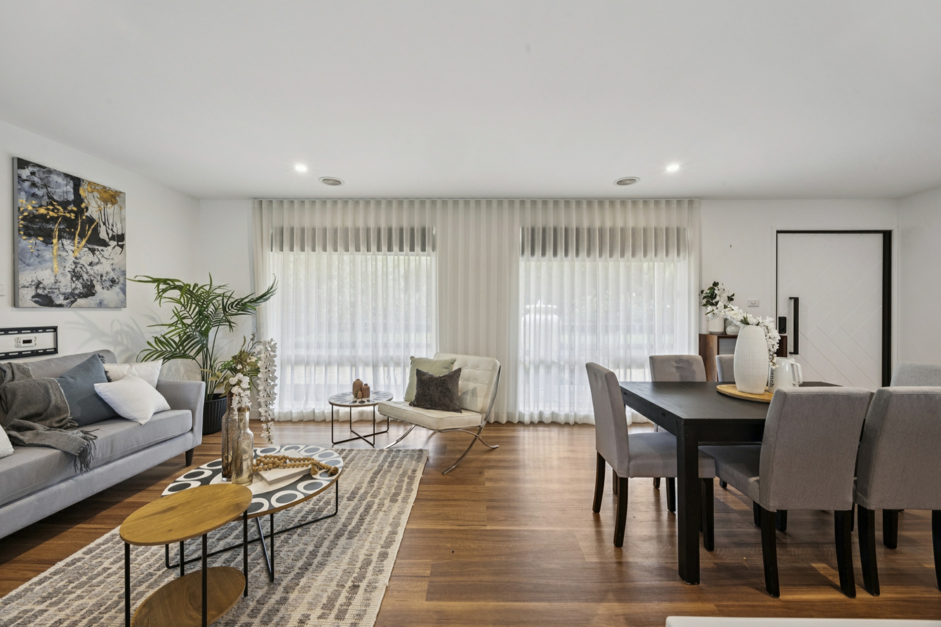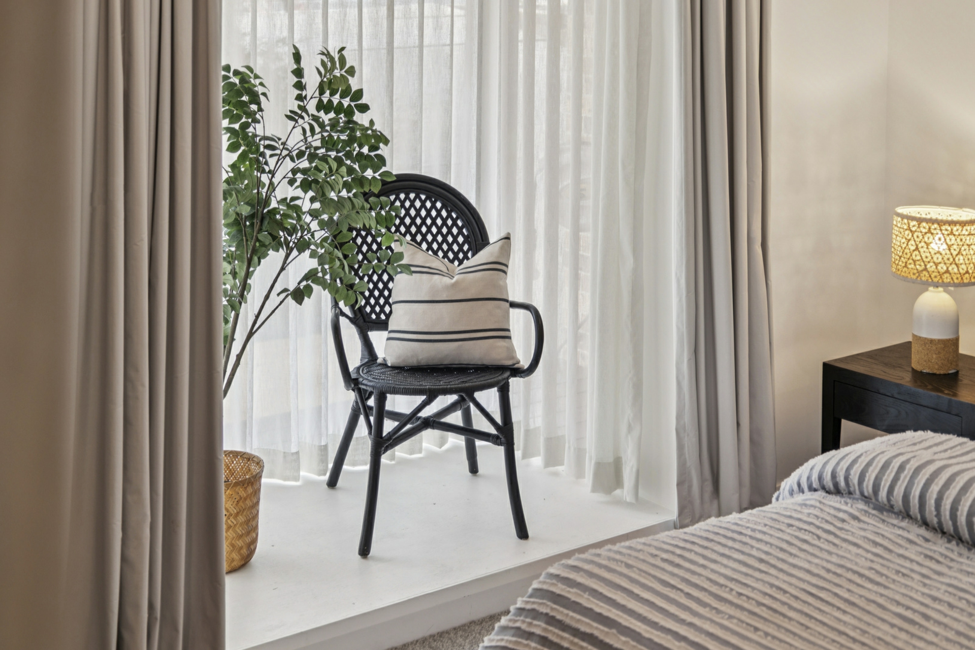 • Sheer curtains to living area and main bedroom