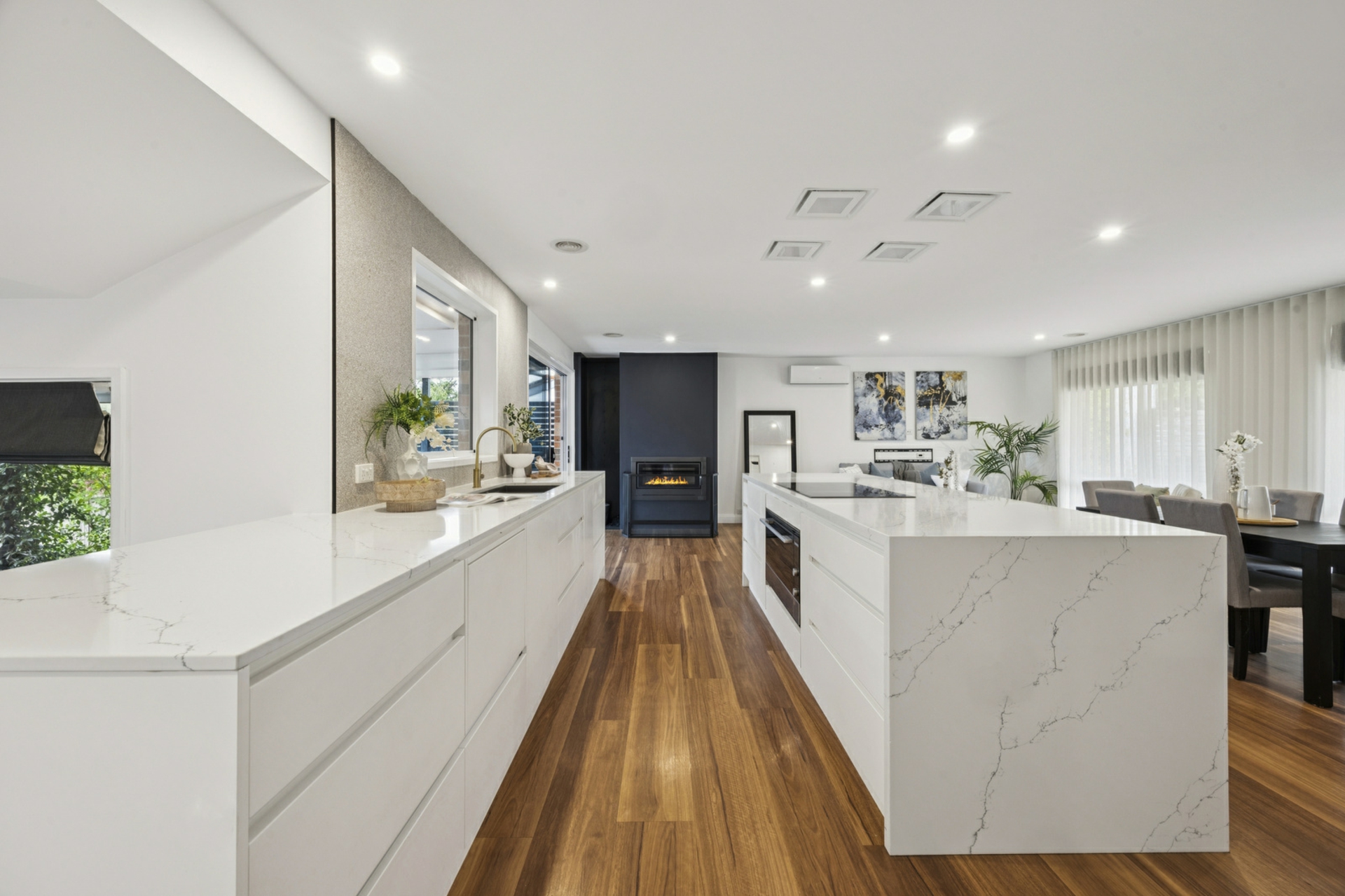 • Ducted gas heating, split systems & fireplace