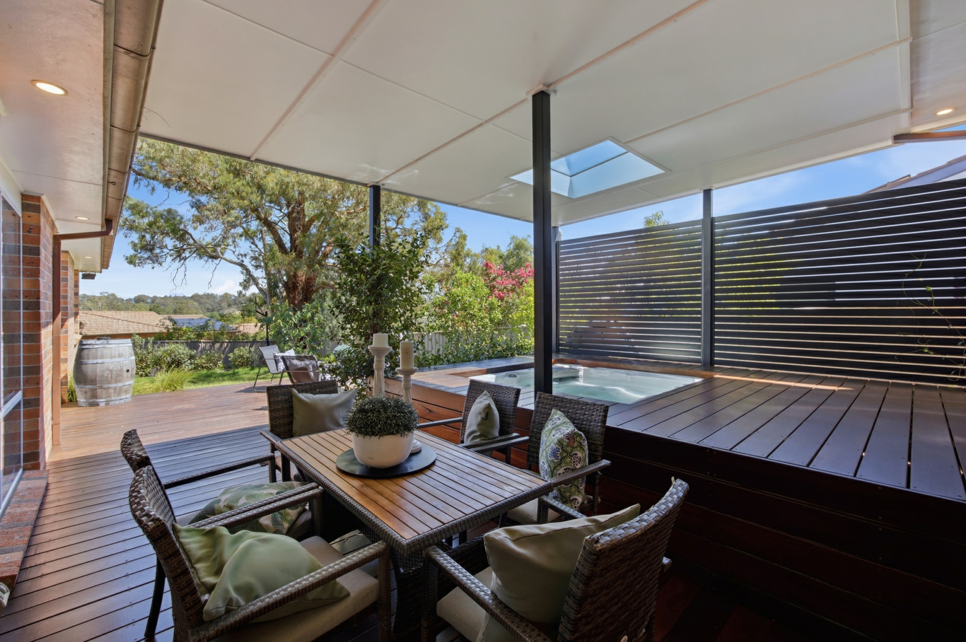 • 60sqm semi-covered entertaining deck with in-ground spa & skylight