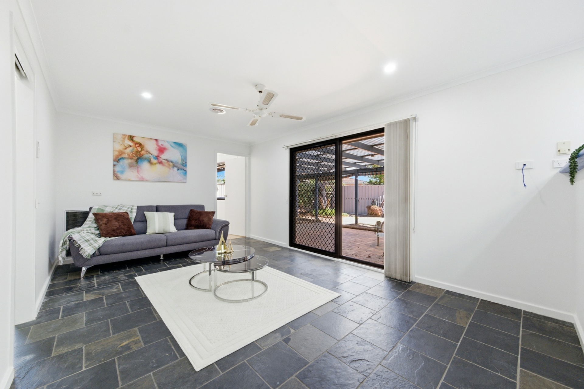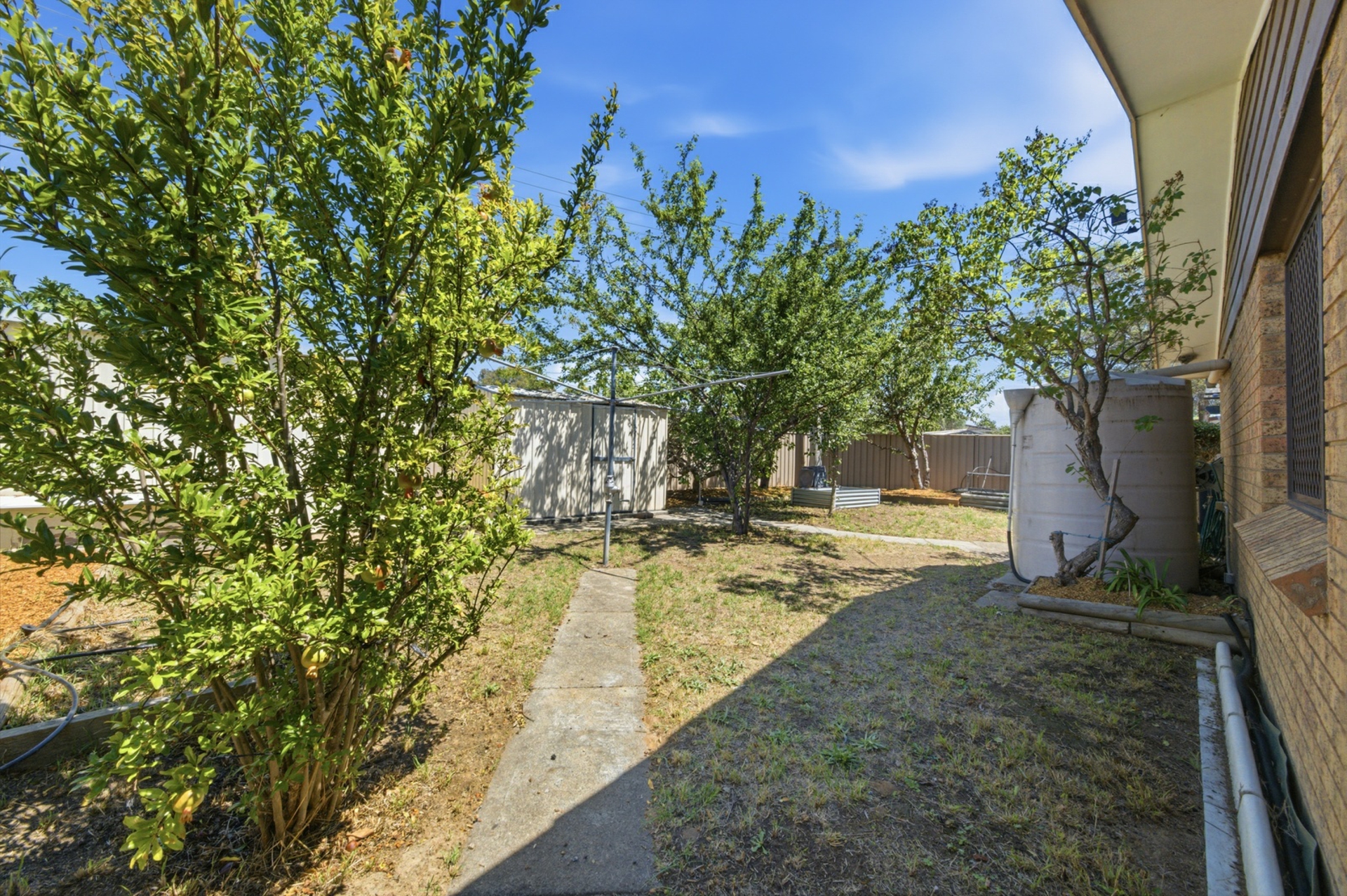 Indoor outdoor living is effortless with a covered entertaining area overlooking the backyard with 7 varieties of fruit trees, ideal for summer barbecues or peaceful Sunday mornings with a coffee, all secure with full Colourbond fencing. Practical extras include electric heating and evaporative cooling, newly installed electric hot water system, two water tanks with pump installation, and a large grid connected 2.1kW solar array with a 50c rebate fastened to the roof with all north facing panels to help keep energy costs down.