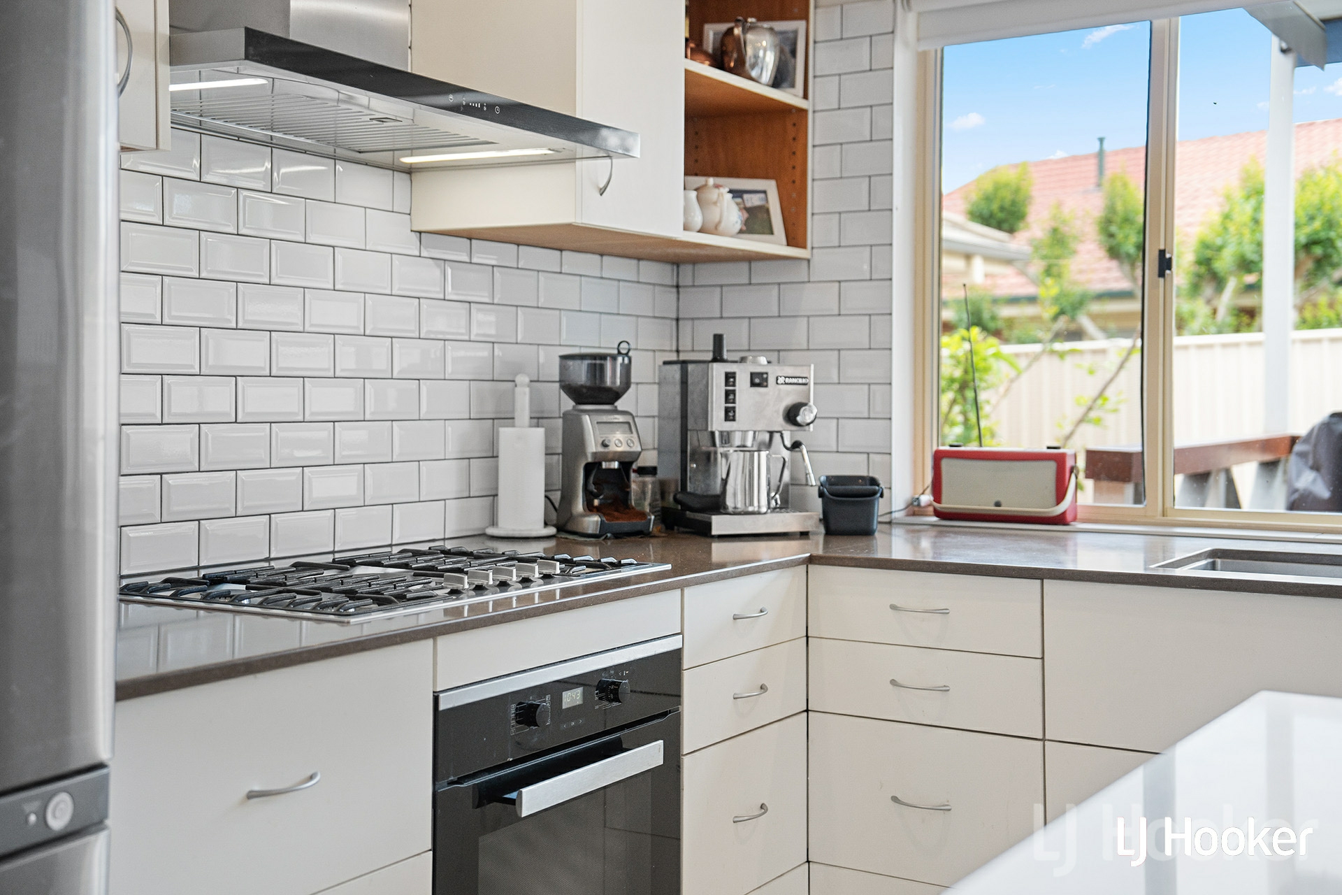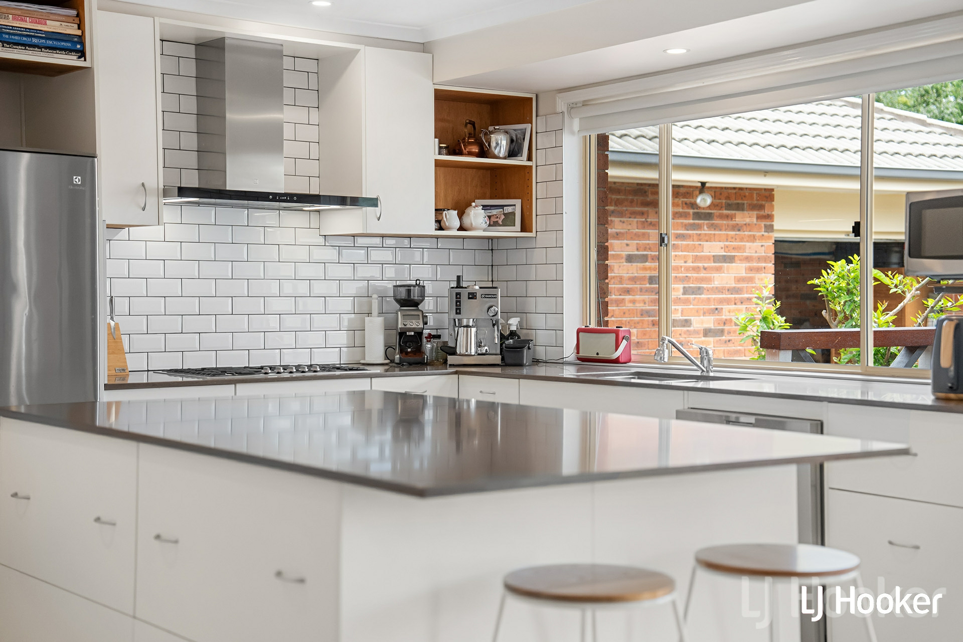 The kitchen is well appointed with stone benchtops, quality joinery and Miele appliances.