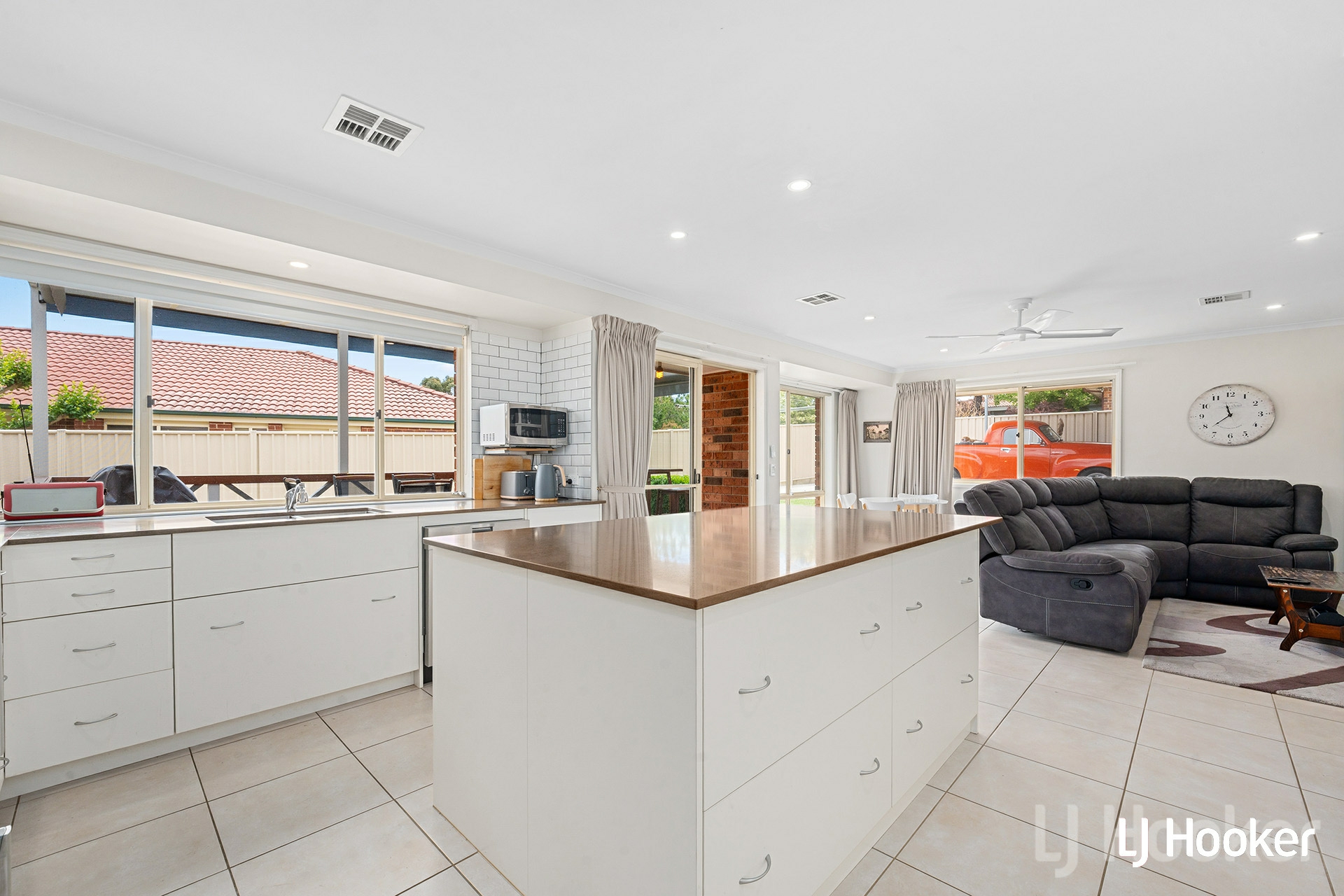 Set on a generous 735sqm (approx.) block, this well-maintained three-bedroom home features multiple living areas and a practical, family-friendly layout. A formal lounge and dining area sit at the front of the home, while the open-plan kitchen and family room form the central hub, flowing seamlessly to a covered outdoor entertaining area on the northern side of the home.