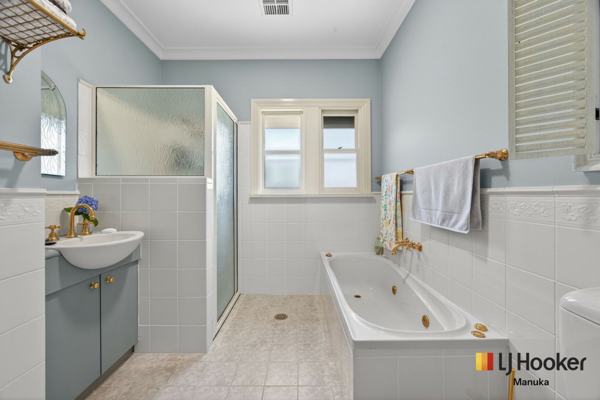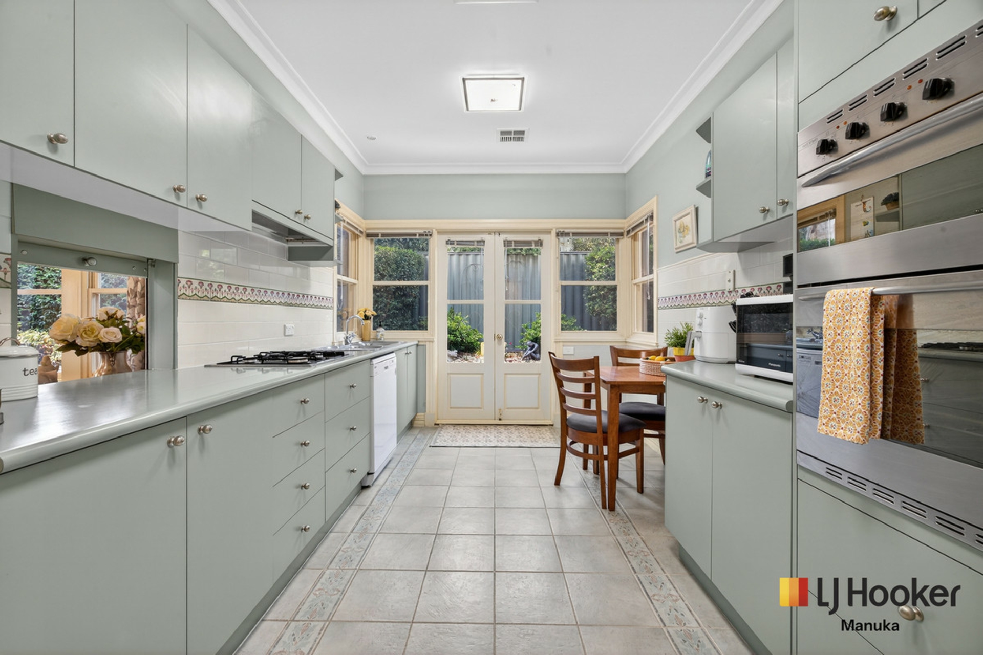 The home showcases 9ft ceilings, picture rails and elegant sash windows with security screens throughout. A spacious living room is warmed by a gas fireplace and flows to a separate formal dining area, while French doors enhance the home's character and connection to the outdoors. The light-filled eat-in kitchen is well appointed with gas cooking, electric oven and dishwasher, catering easily to family living.