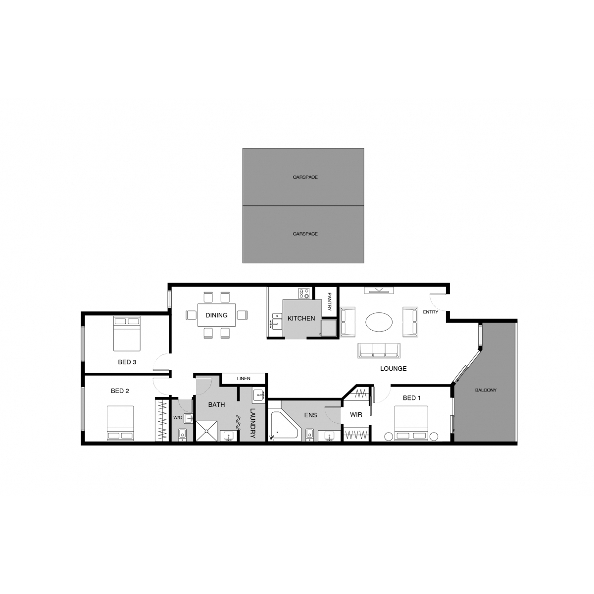 As well as the large master bedroom, 2 other large bedrooms are located at the back of the apartment to ensure privacy and quiet from kids or flatmates. The two large living areas provide ample space for sofas, dining table, or home office area.