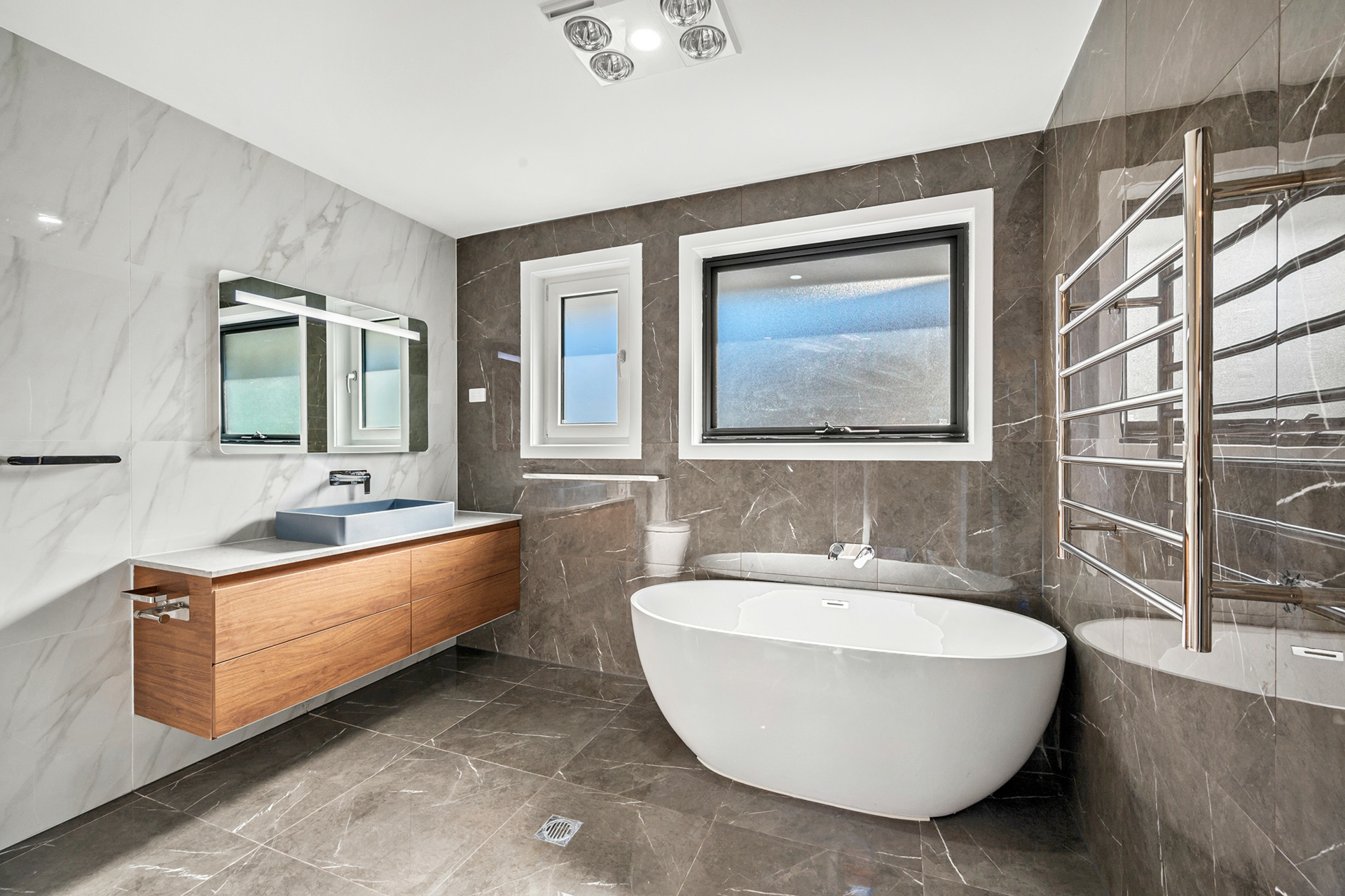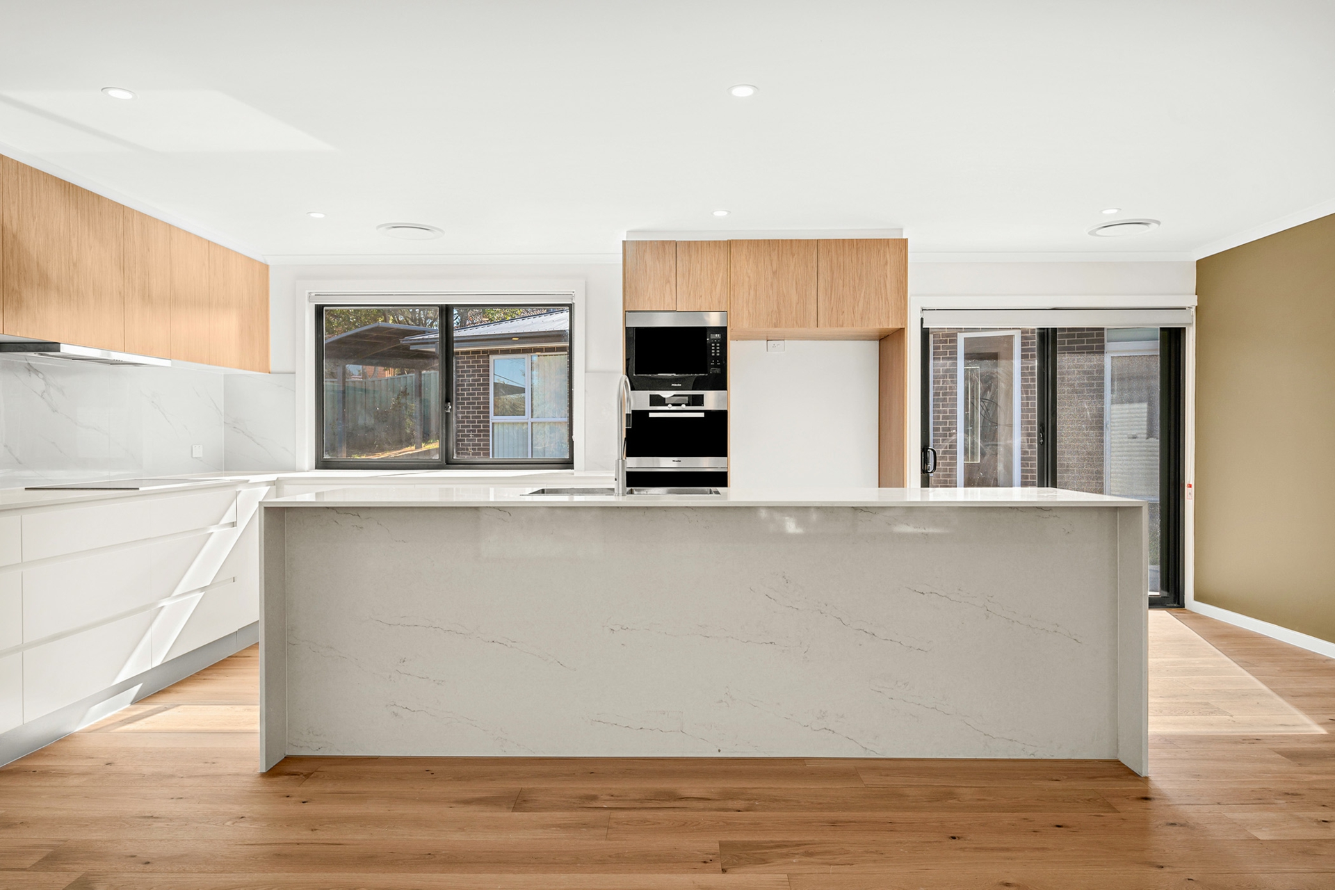 At the rear, discover a brand-new three-bedroom ensuite home, built with the same attention to detail and quality. This stylish residence features an open-concept layout, perfect for entertaining and everyday living. The master bedroom boasts a chic ensuite, with two more generous bedrooms providing comfort and versatility. a large outdoor covered al fresco + kitchen adds a whole extra dimension to this space as a brilliant addition.