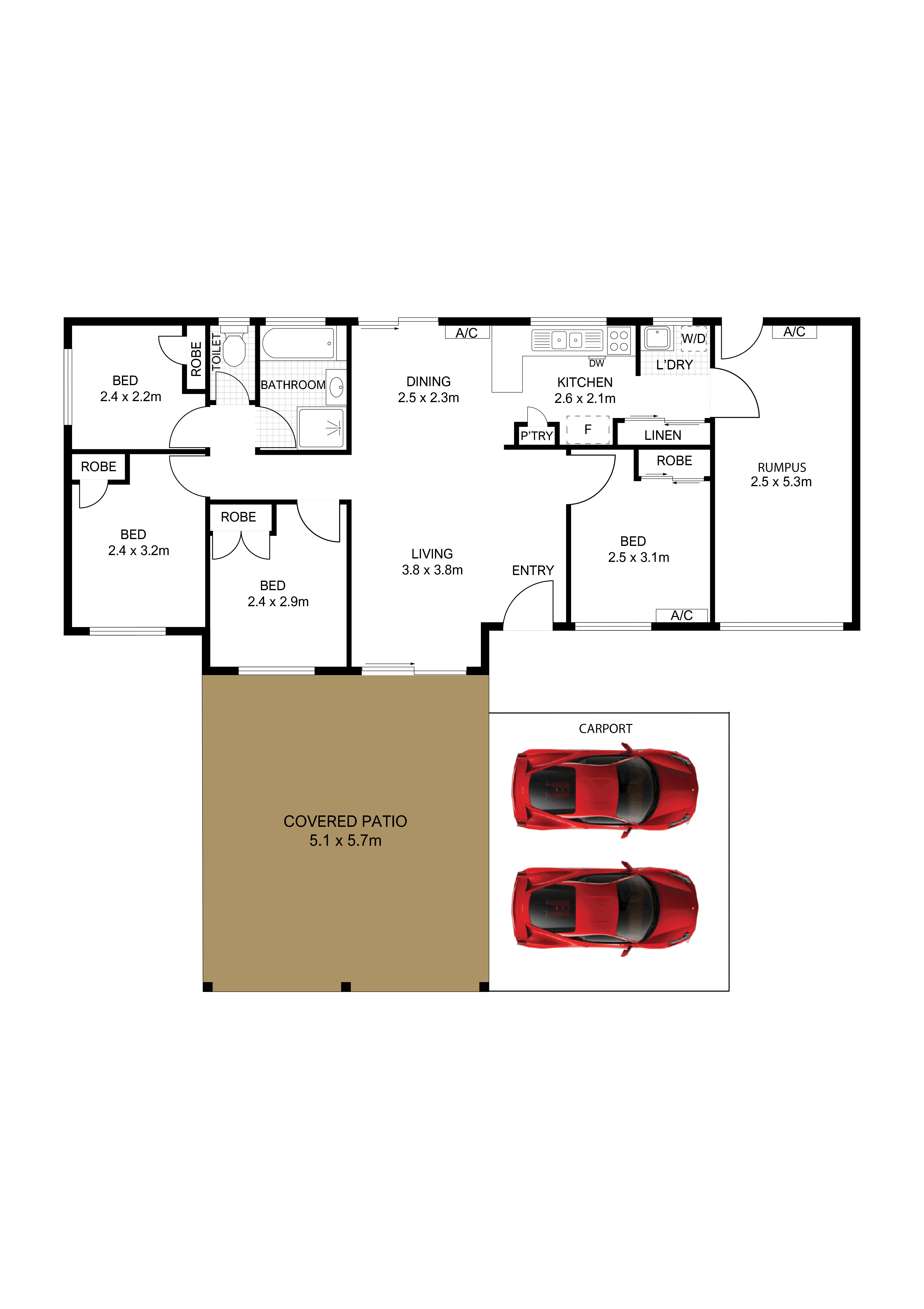 • Big rumpus room (separate to the main living zone)