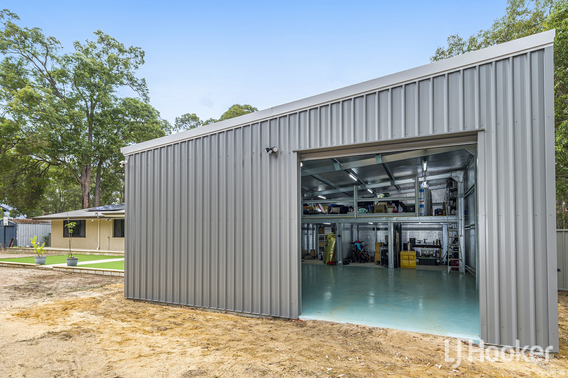 A sweeping arched driveway welcomes you, designed for effortless access and ideal for larger vehicles. It leads directly to the impressive near new approx 12m x 7.6m workshop, complete with a mezzanine level and three bays beneath, delivering around 94sqm of versatile space. With 24 solar panels and a 20kW battery system, the property is also geared for energy efficiency, keeping running costs low.