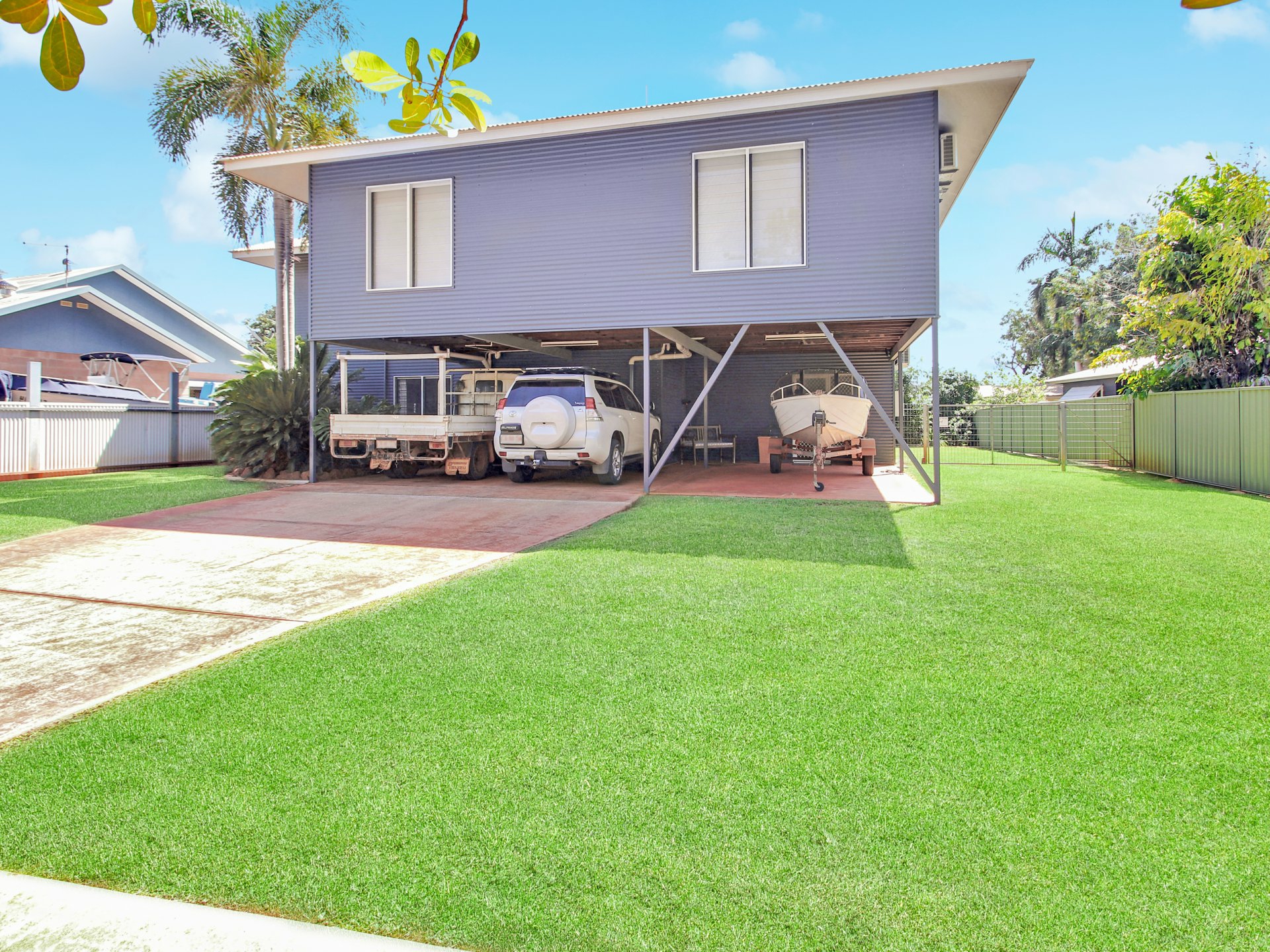 - Undercover car port to fit three cars or two and a boat