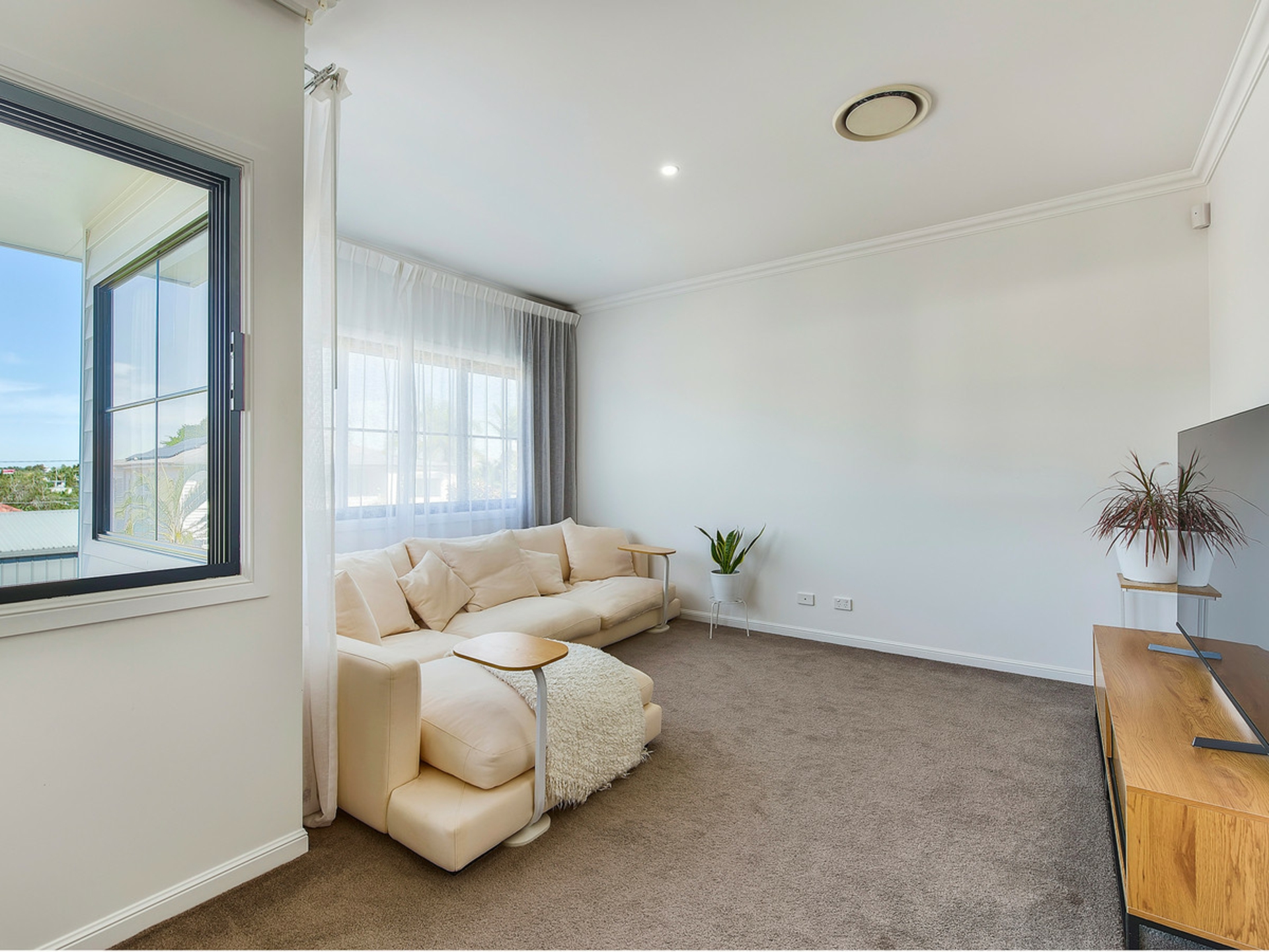 Upstairs, the main and three bedrooms are complete with walk-in wardrobes. The first floor rumpus area with home office space has spectacular views to the City! The large master suite is north facing which soaks in the warm winter light and captures the bay breezes through the summer. The master is complete with a spacious ensuite with VJ feature walls, double shower, and free-standing bath.
