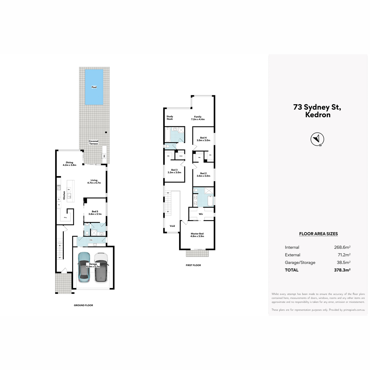 The ground floor with 2.7m ceiling heights is also home to the media room which doubles as your fifth bedroom with an ensuite and separate powder room access. The laundry features ample hanging and storage space, MUD room with built in cabinetry and side access to a drying area.