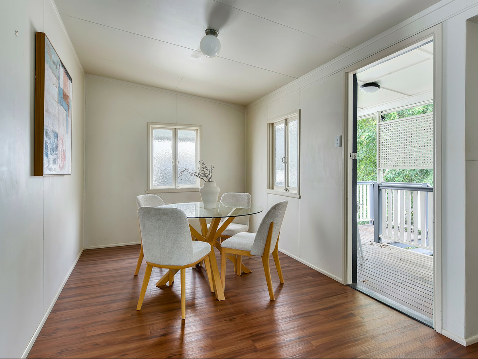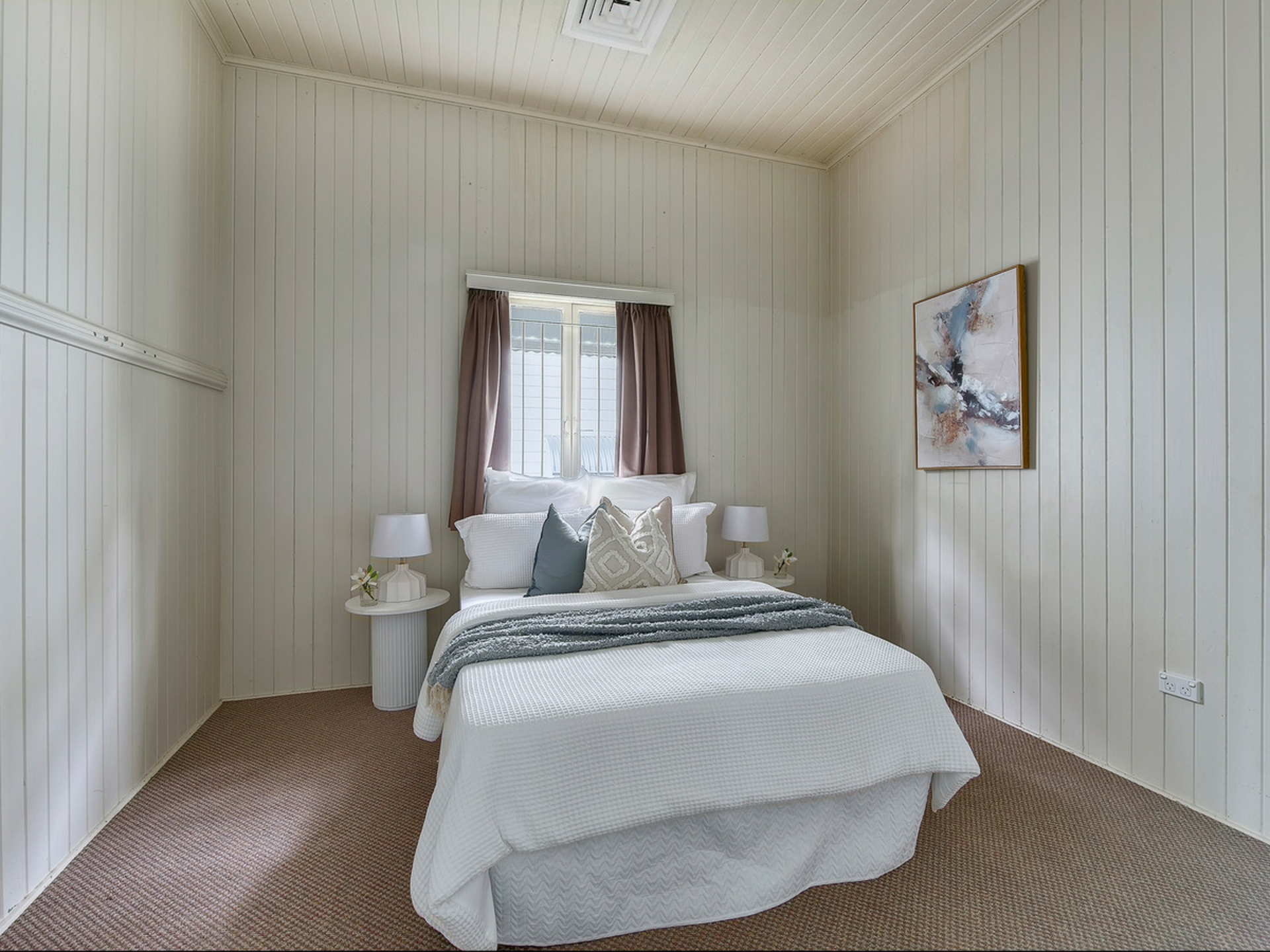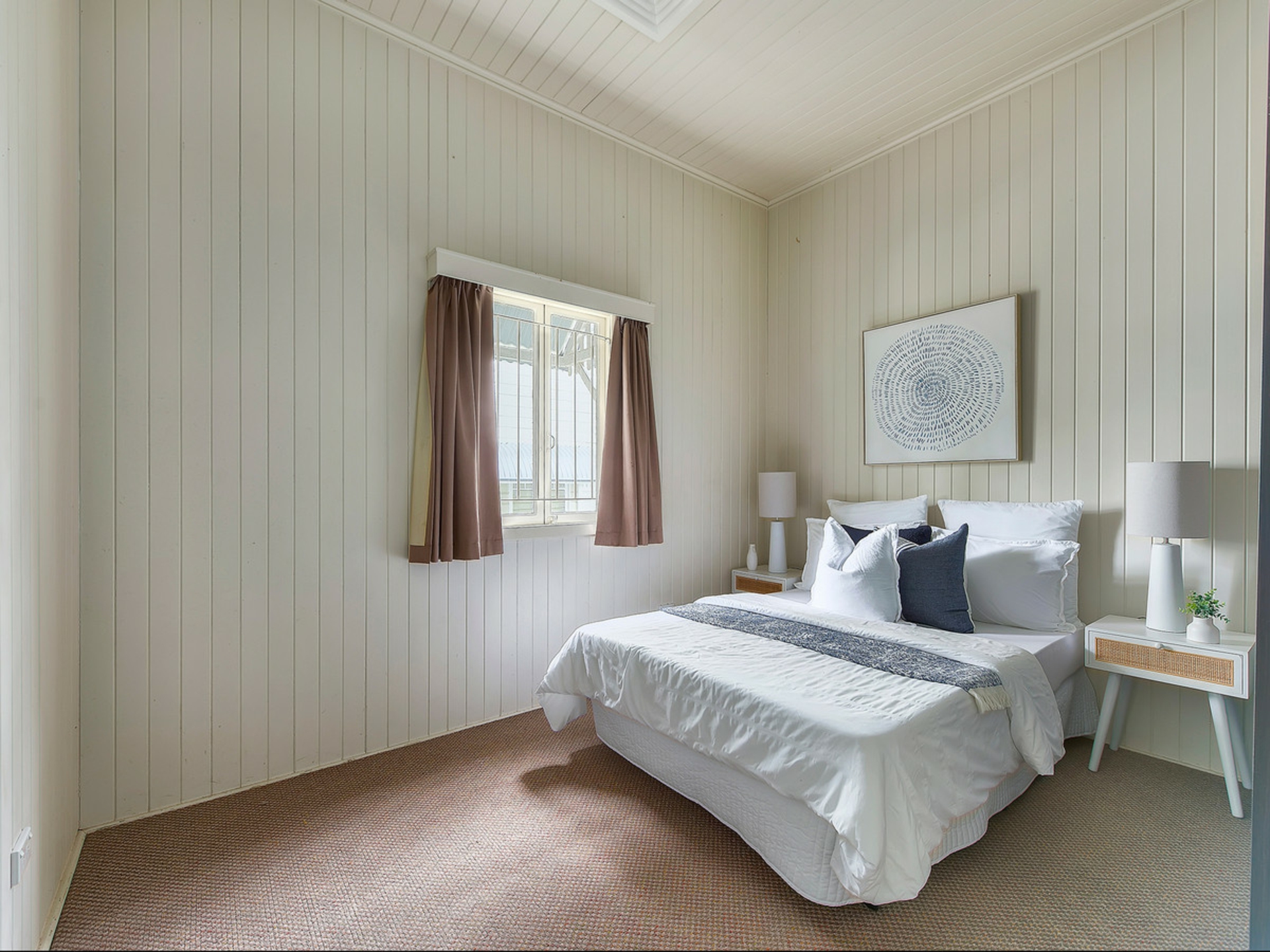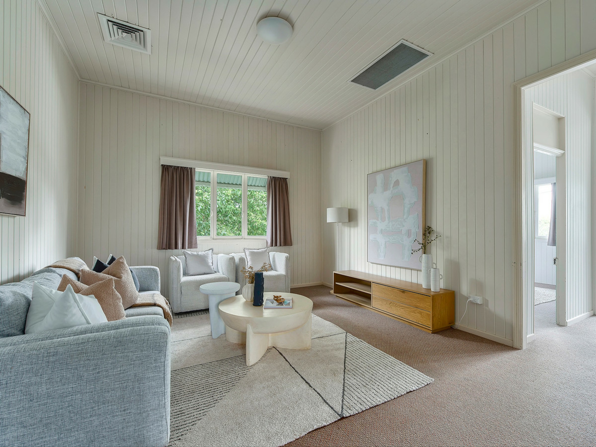 The home features a generous primary bedroom along with two additional bedrooms, all well sized and positioned close to the central bathroom. Each room retains the calm, easy atmosphere that defines the home and makes it such a comfortable place to live.