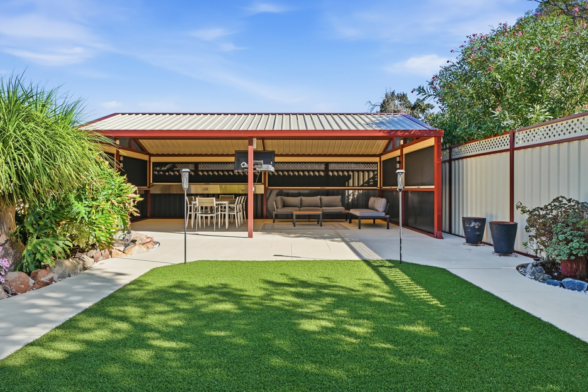 • Resort-style alfresco with limestone paving & astro turf
