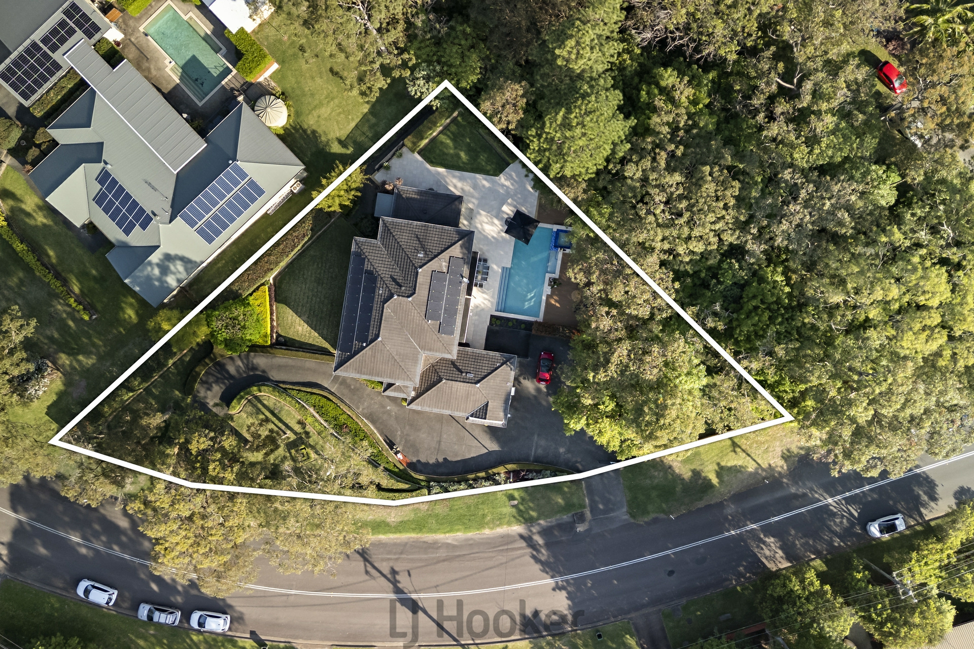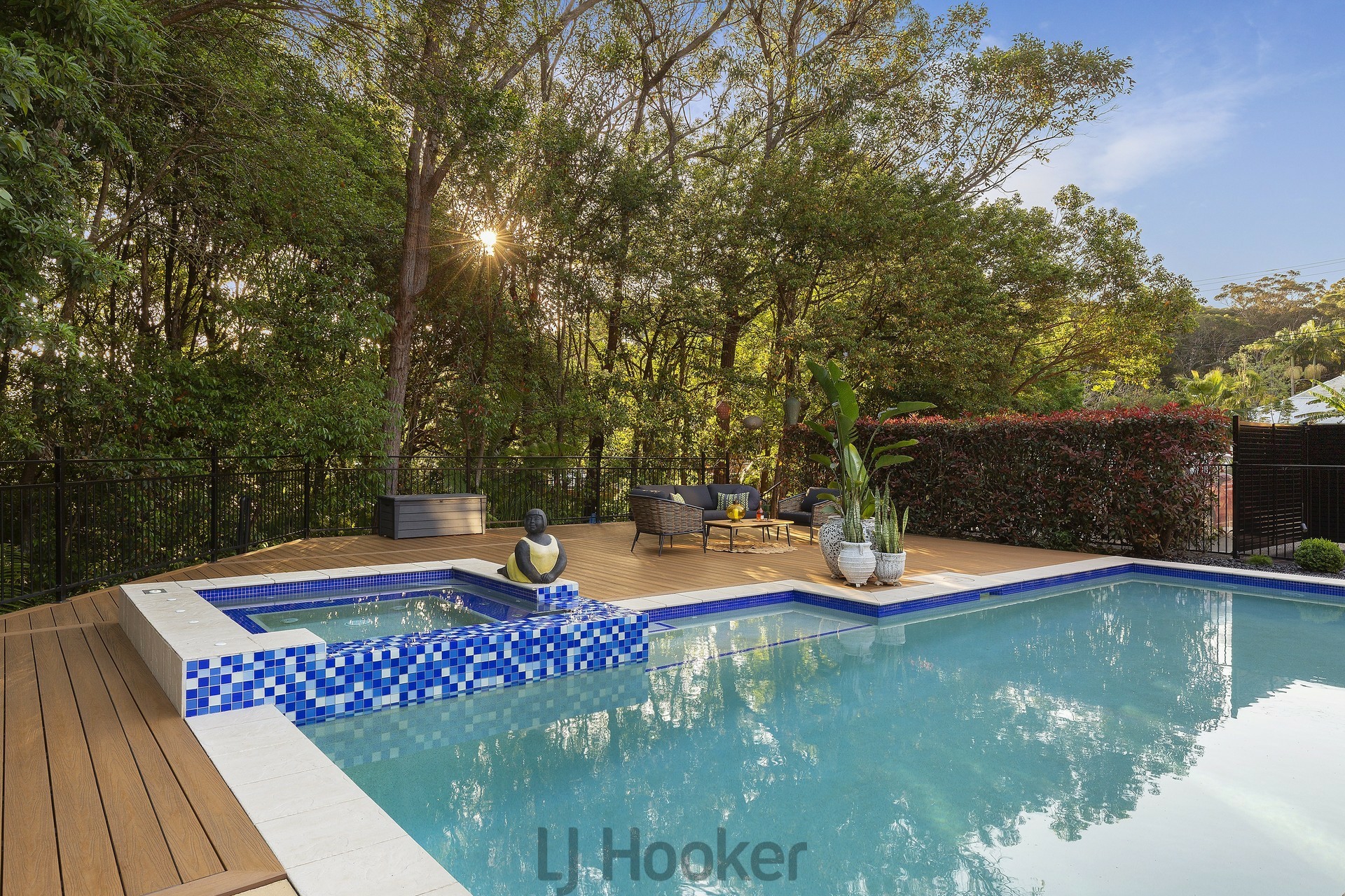 Outdoors, a resort-style pool and separate spa are framed by immaculate, landscaped gardens and manicured lawns, creating a private sanctuary ideal for entertaining or unwinding.