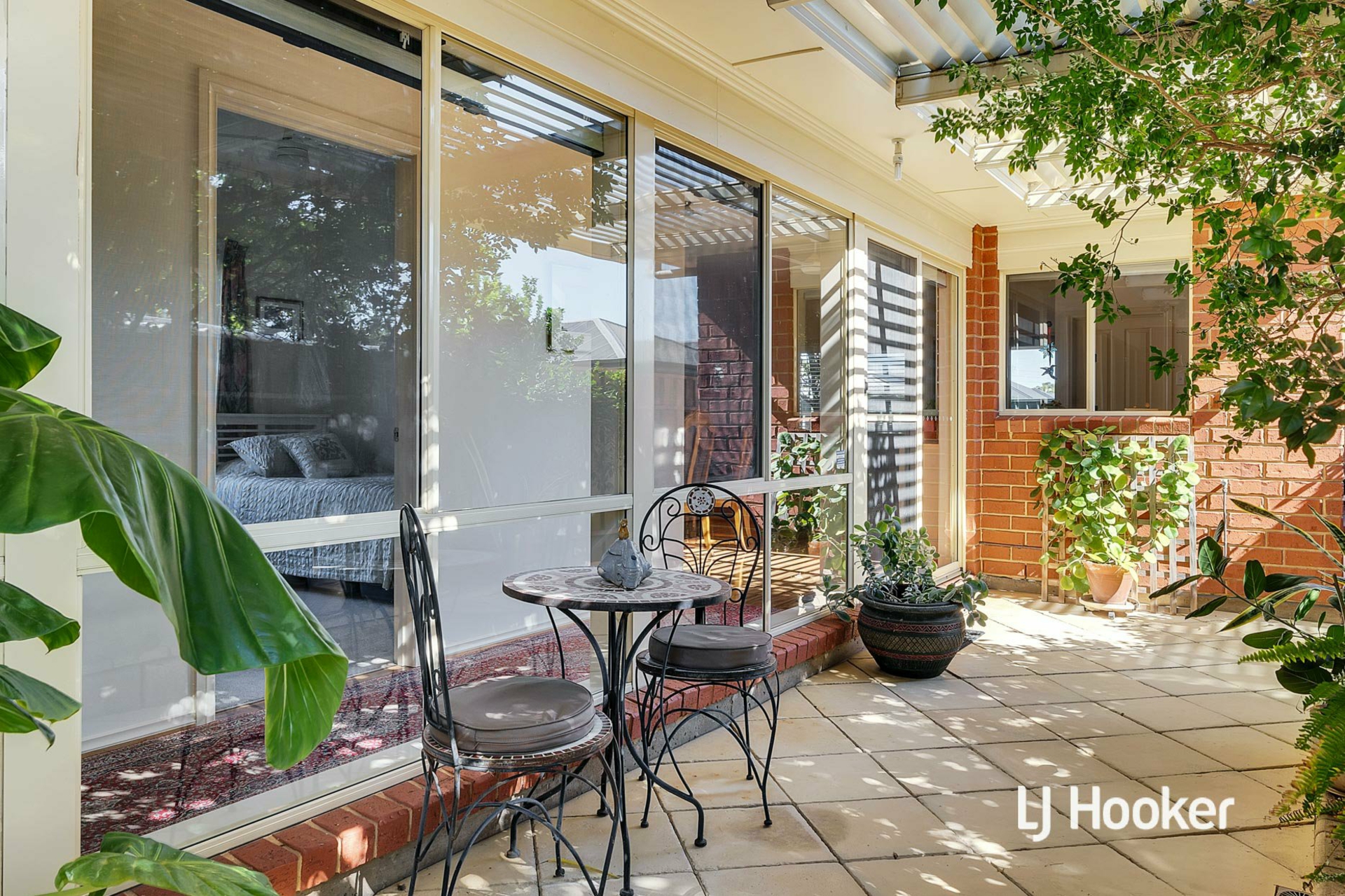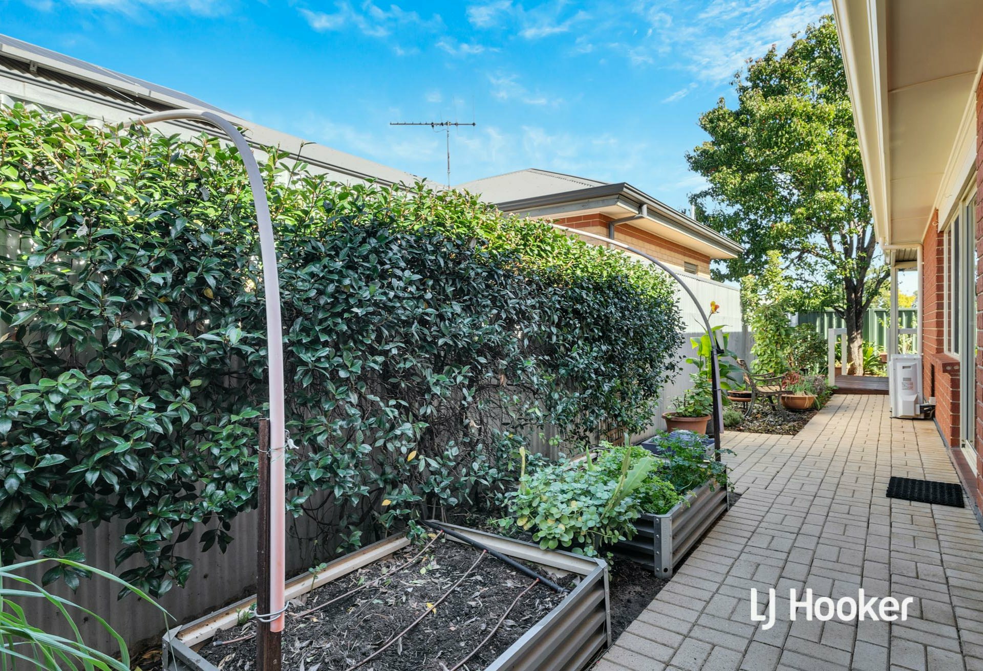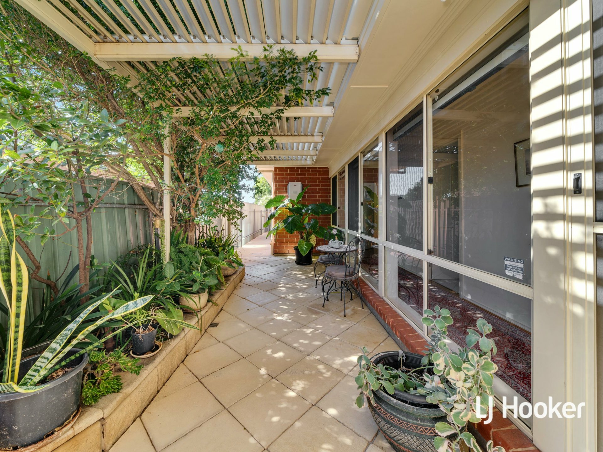 Beautiful established gardens wrap around the home, providing greenery, privacy and a calming atmosphere, while still remaining wonderfully low maintenance. Side access on one side leads to the central courtyard, while the other provides access to the garage and sliding door entry into the dining area.