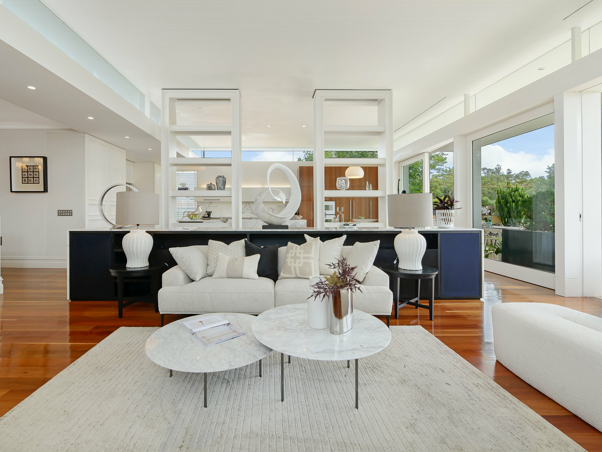 The signature piece of this grand residence is the design of the rear pavilion which contains the vast living and entertaining spaces with a spectacularly designed clerestory as well as floor to ceiling windows and sliding doors creating a seamless indoor and outdoor experience, culminating in expansive breathtaking and unique treetop views.