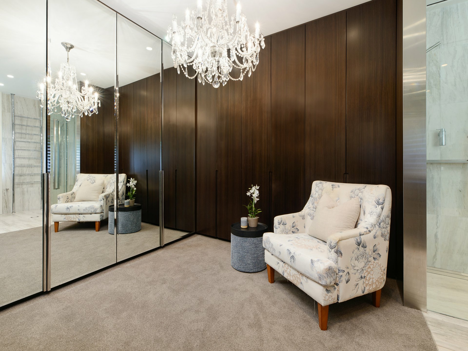 The elegant master retreat offers a stunning escape from the outside world, presenting total privacy with an oversized dressing room with bespoke wardrobes and shelving and a luxurious en-suite, flowing to the exclusive and private veranda.