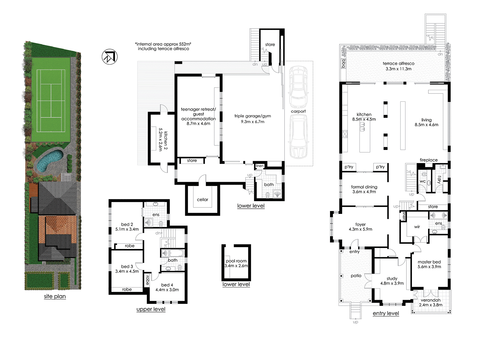The lower level further embraces the epitome of luxury living this estate has on offer with a superior size teen or guest retreat, complete with full second kitchen and large luxury bathroom and capturing the picturesque tree views and overlooking the spectacular pool and tennis court.