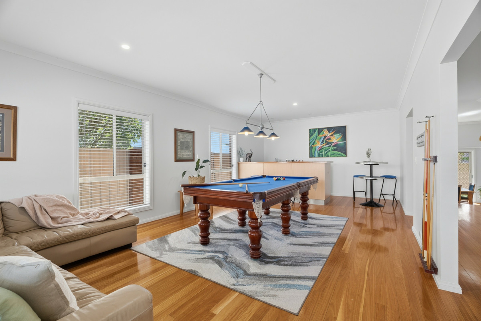 •Oversized rumpus room / front living area with built in bar.