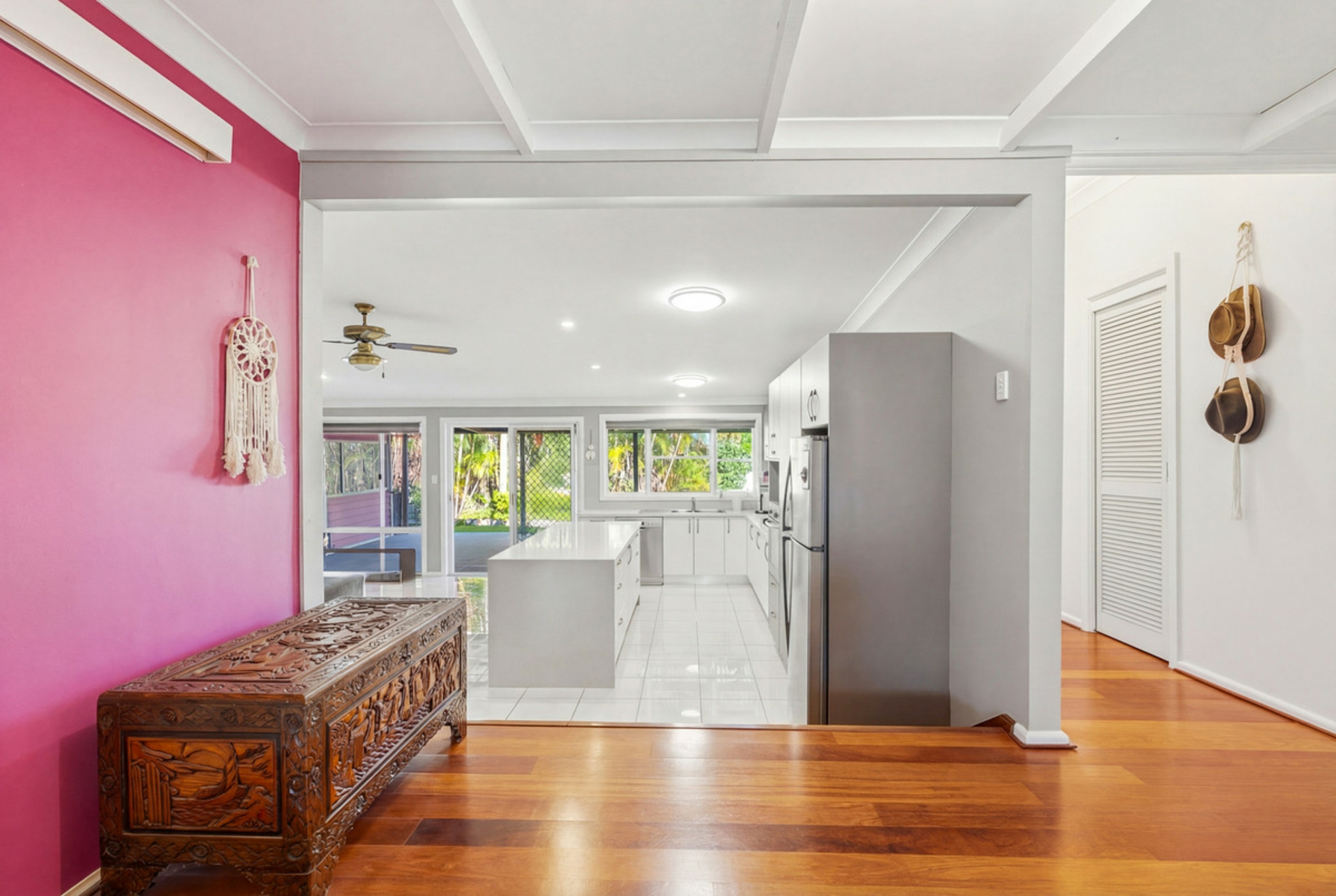 Beyond the sun-drenched front balcony, you will be greeted by: