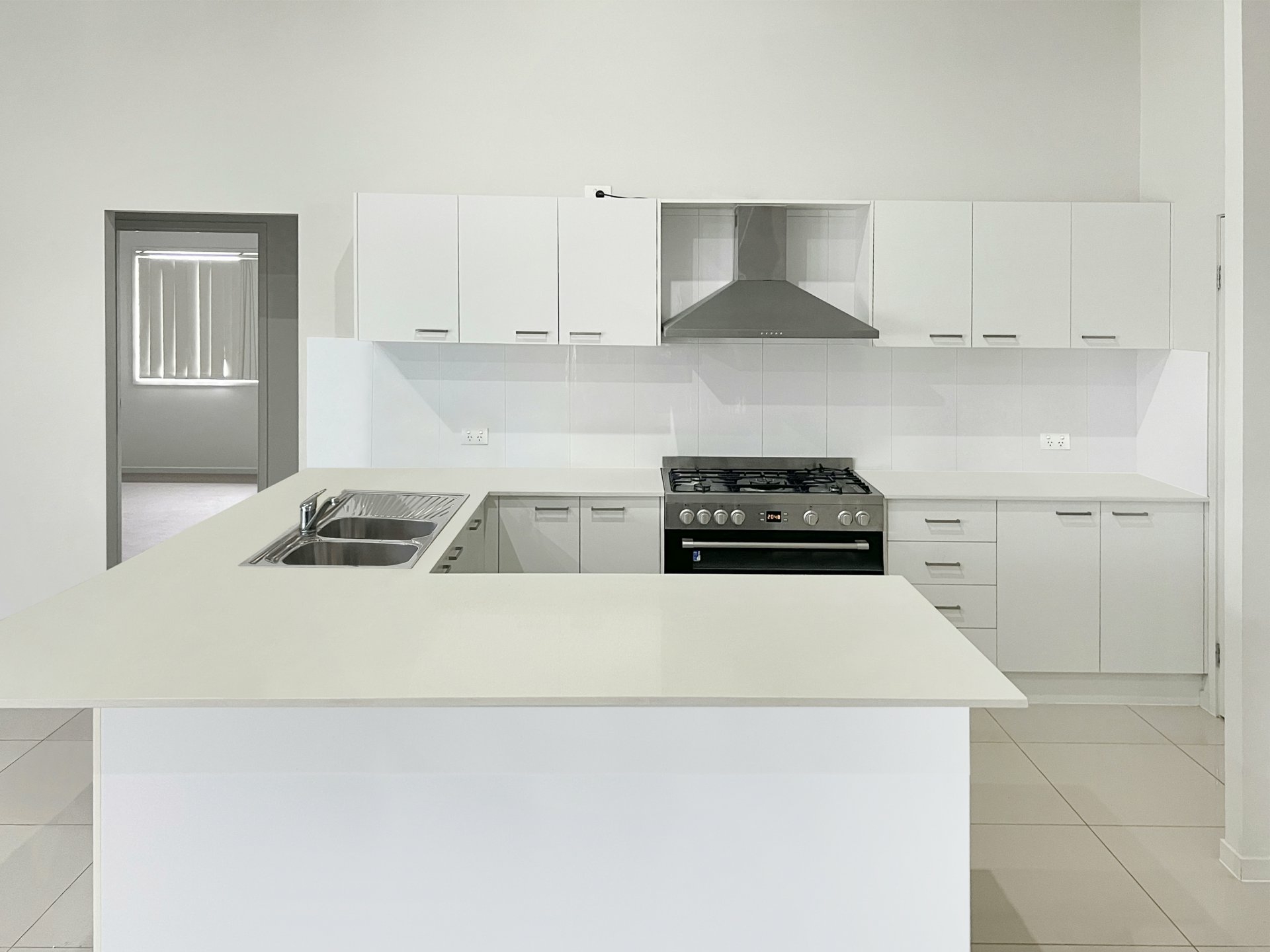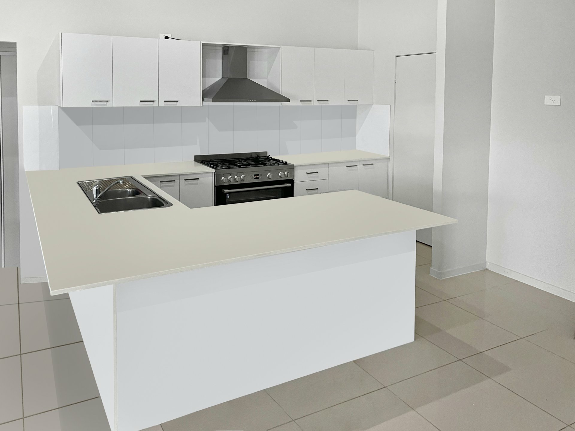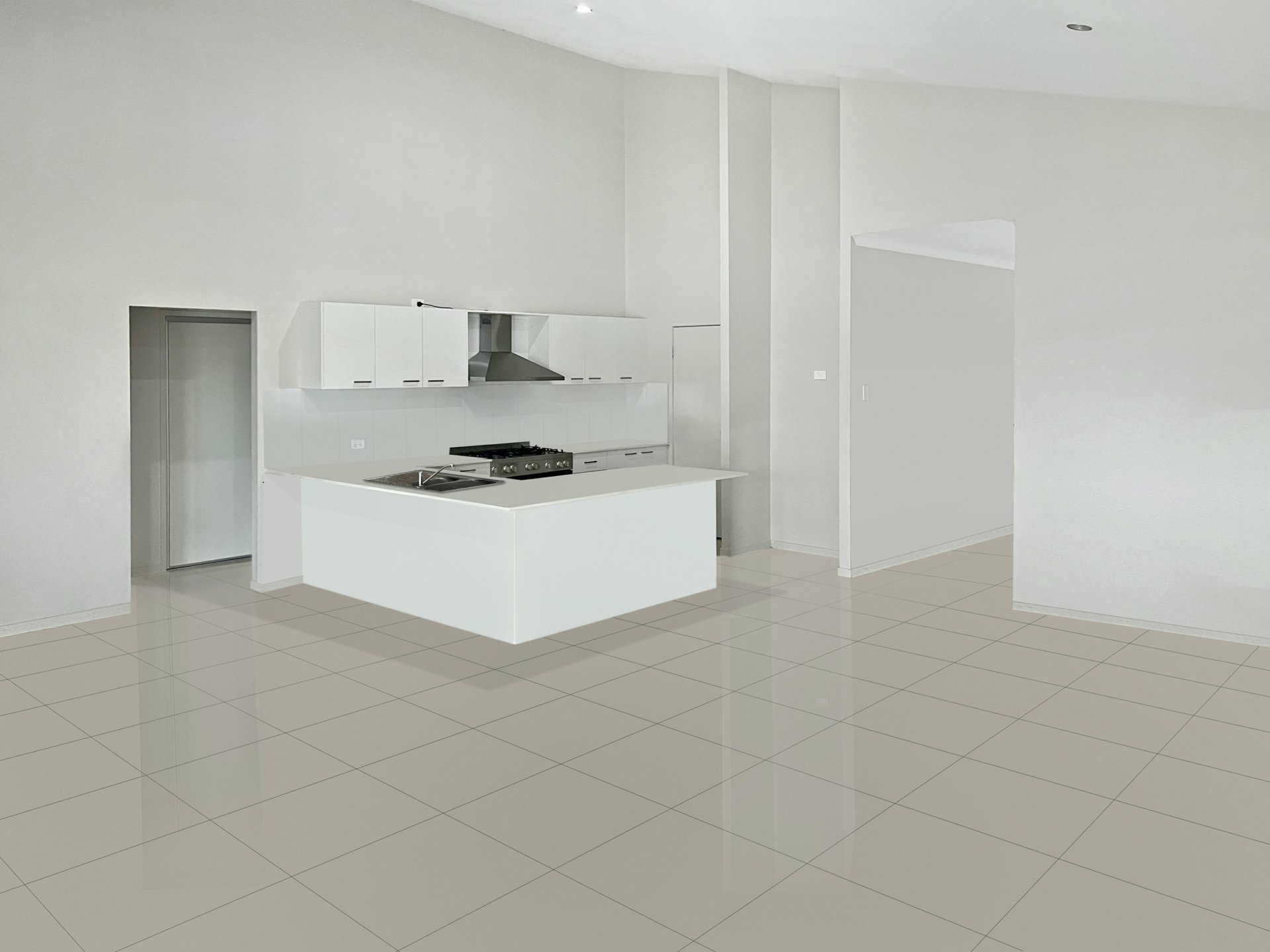 At the heart of the home is a large open-plan living and dining area that flows around a modern kitchen complete with stone benchtops and ample workspace. A separate, private media room provides an additional living zone—ideal for movie nights or a quiet retreat away from the main living space. Sliding doors open to the rear patio, offering a relaxed outdoor area for entertaining or enjoying the backyard.