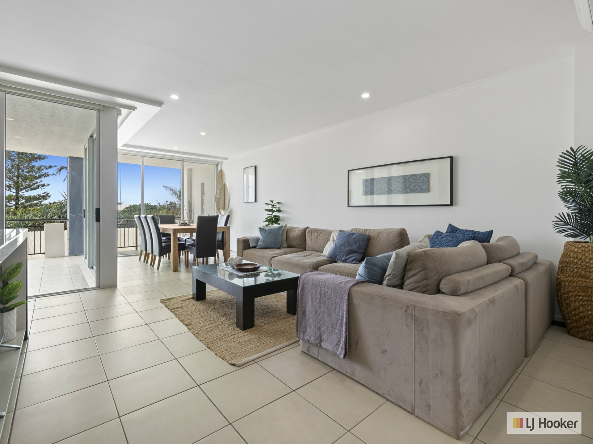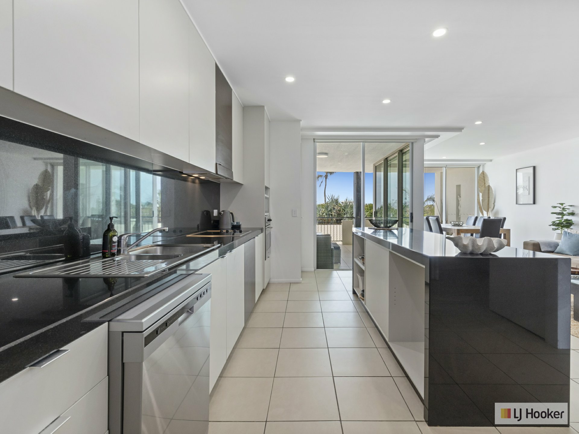 The spacious open-plan living and dining zone flows seamlessly onto a large, covered ocean-facing balcony - your go-to space for sunrise coffees, sunset wines, or entertaining friends with the soothing soundtrack of rolling waves.