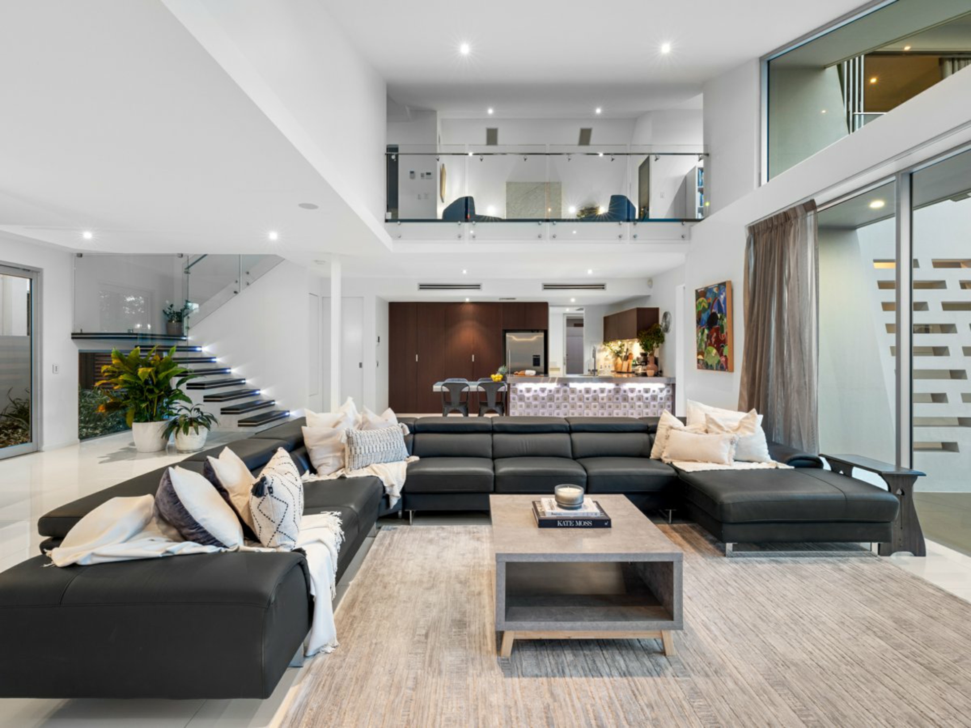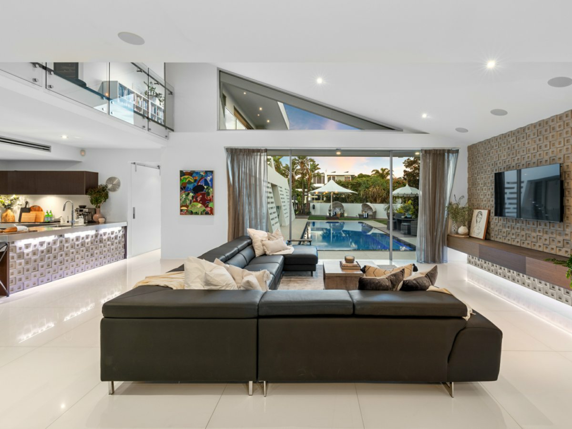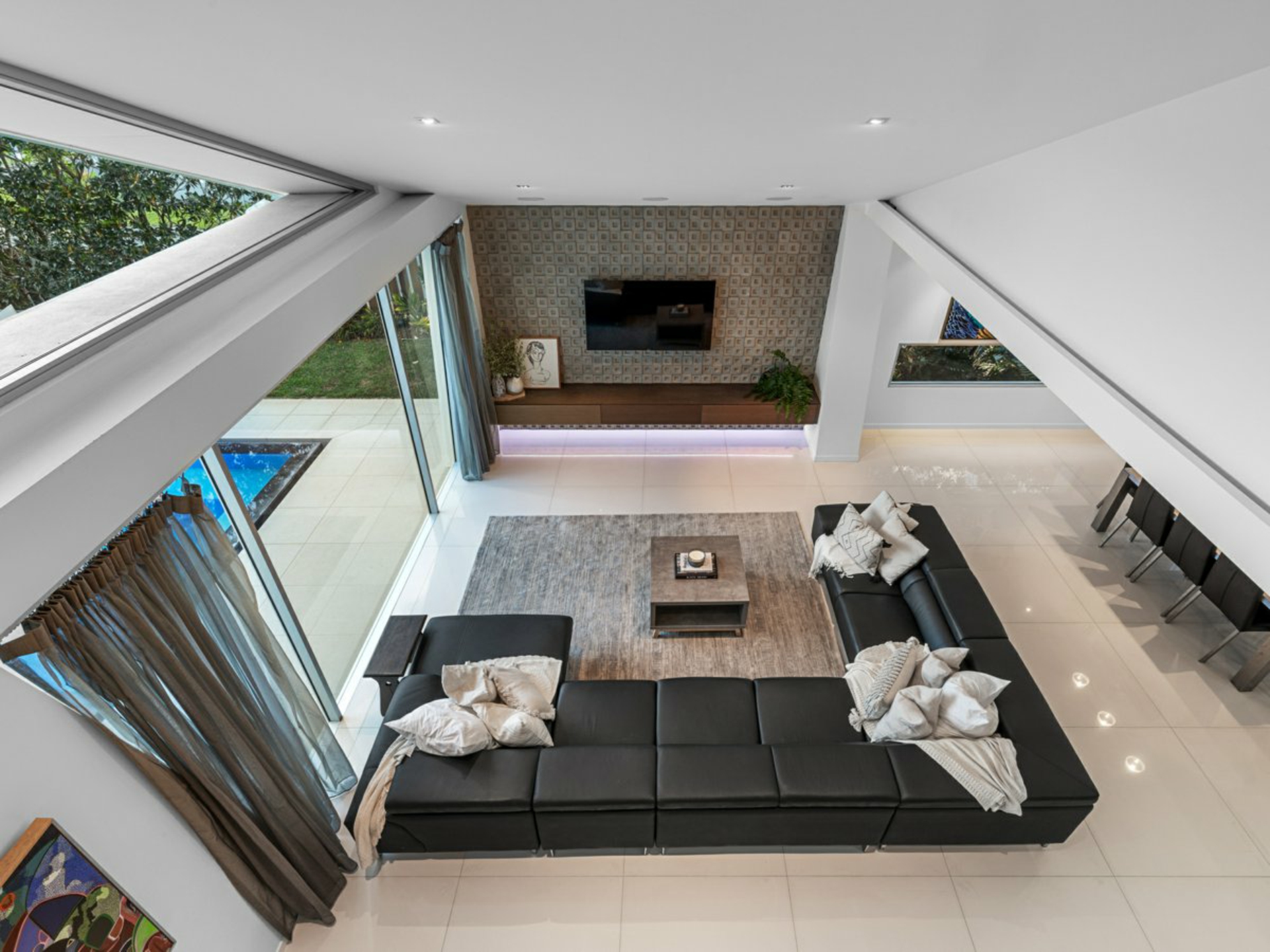 A discreet & keyless entry welcomes you into the warm & inviting spaces, as your eye is drawn to the sparkling swimming pool through the huge, floor to ceiling picture window, in the living room.