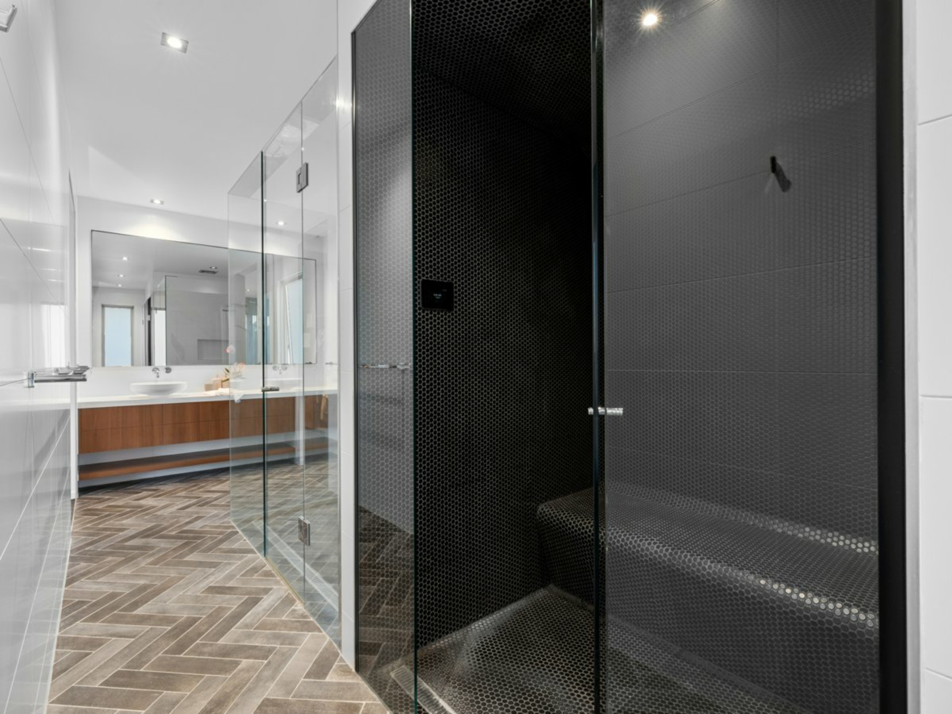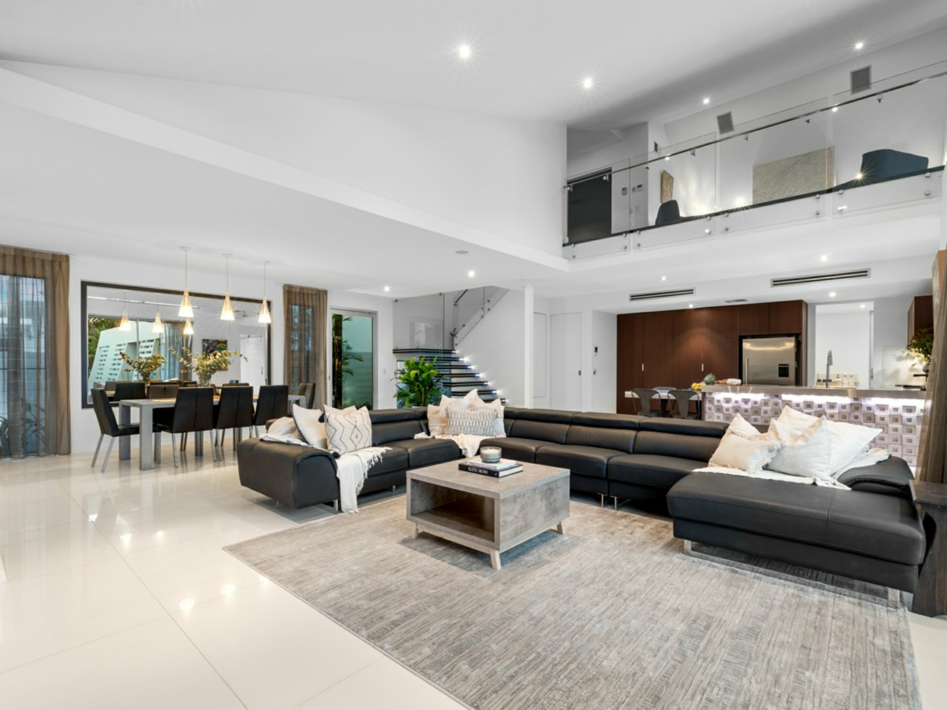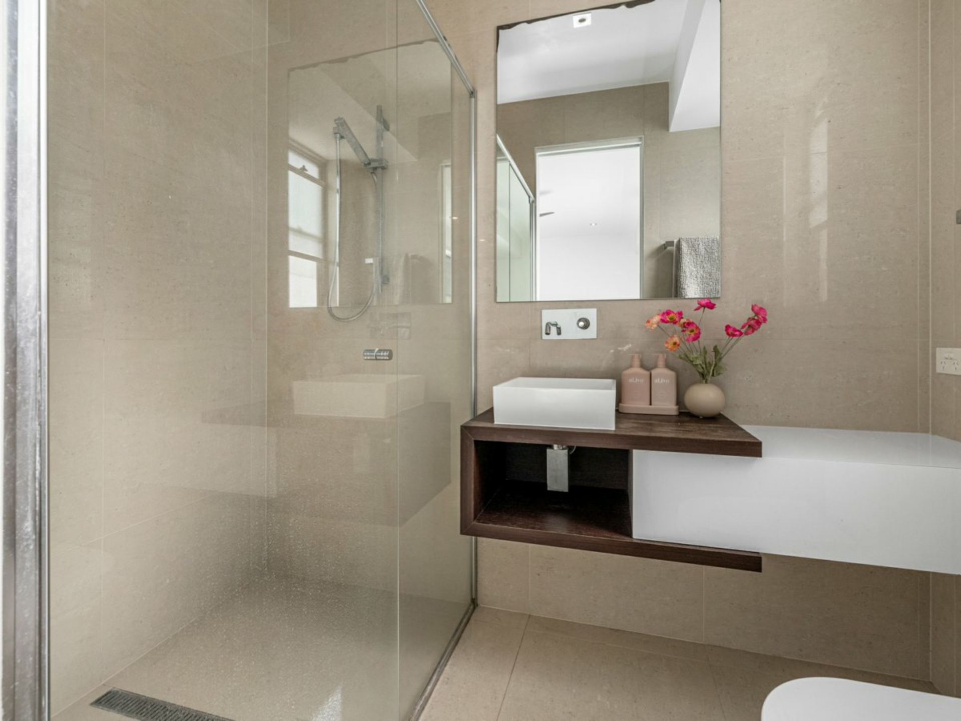 A discreet & keyless entry welcomes you into the warm & inviting spaces, as your eye is drawn to the sparkling swimming pool through the huge, floor to ceiling picture window, in the living room.