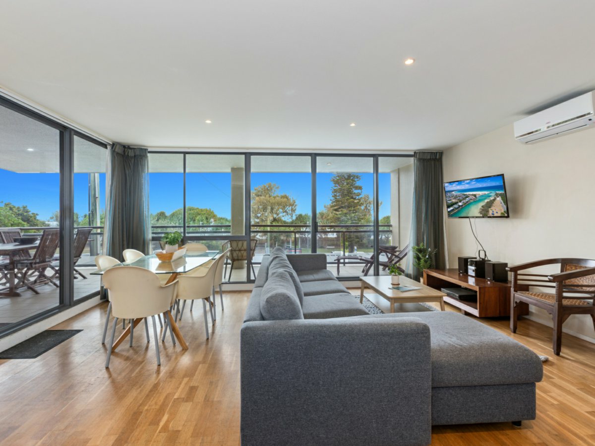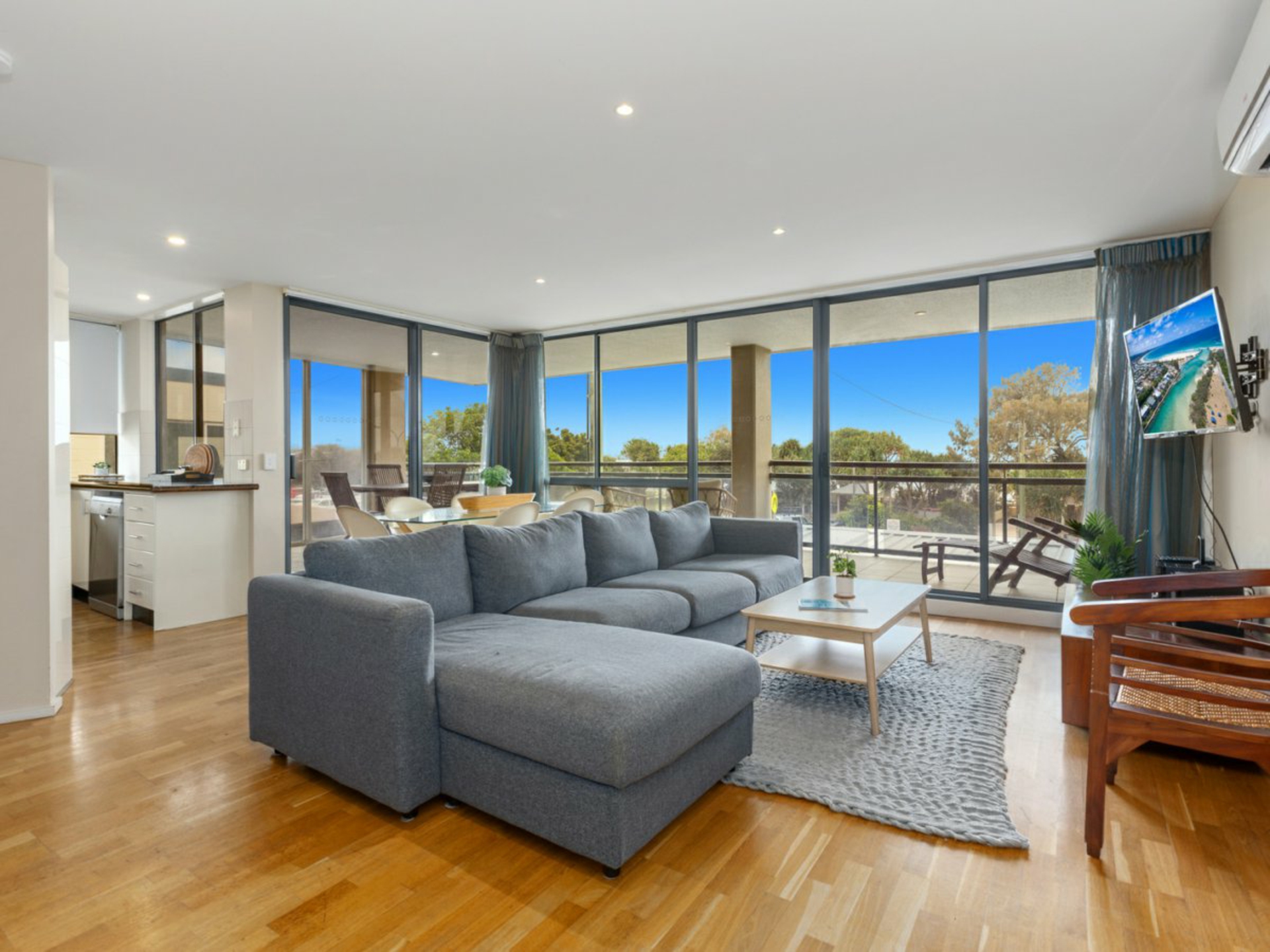 With private entry to the apartment, step inside to discover floor to ceiling glass extending the entire width of the living space boasting stunning ocean vistas across the foreshore parkland. Watch the waves roll in from your spacious front balcony, the perfect space to relax or entertain with family and friends.