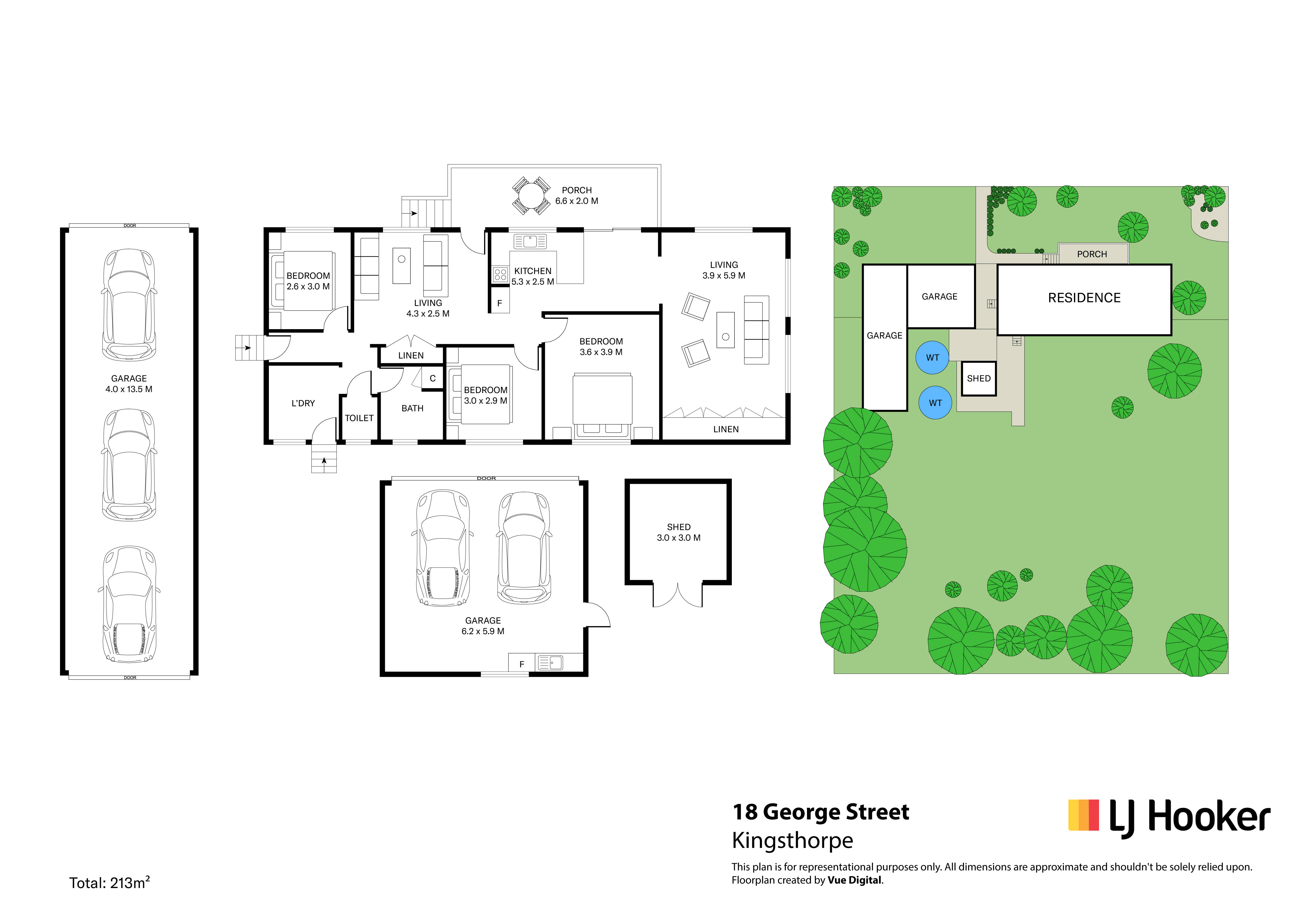 The dual living rooms provide versatile space for a growing family, a home office or a playroom. Outside, a 6x6 metre shed and a 4 x13 metre garage offer ample parking with a total of five car spaces, perfect for work vehicles, hobbies, caravans or recreational gear.