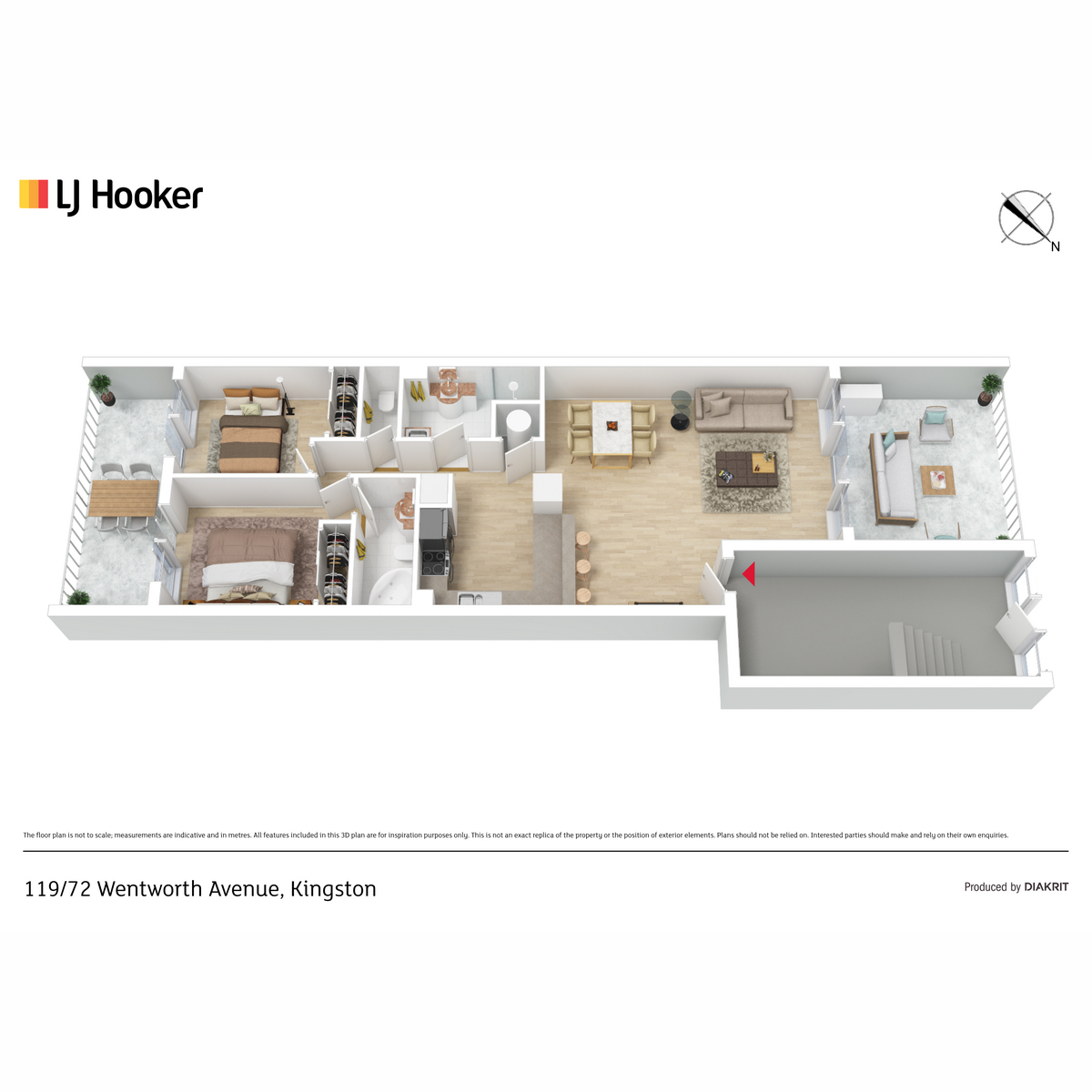 The apartment has two spacious bedrooms that both have access to the balcony. Both bedrooms come with built-in robes and the master bedroom has an ensuite. The apartment is on the ground floor which offers a great courtyard space to use year-round and lets plenty of light in during the day.