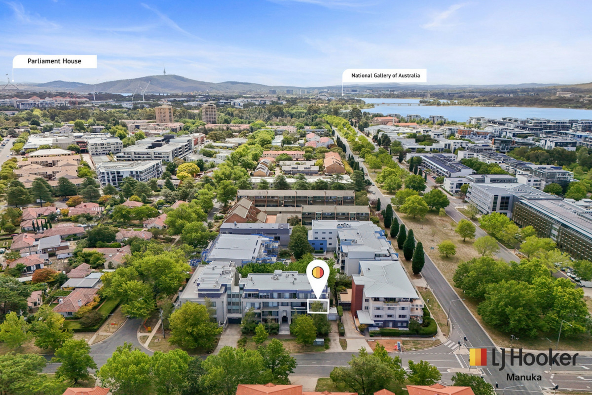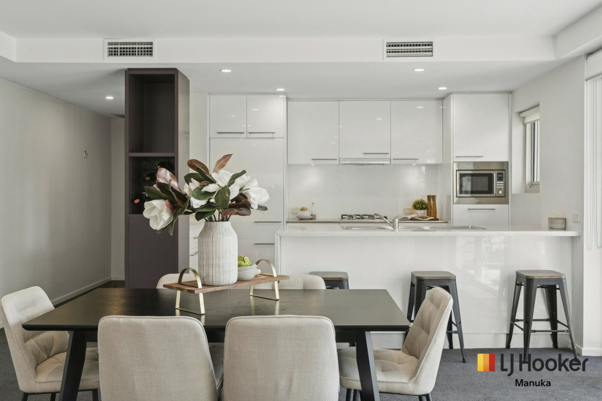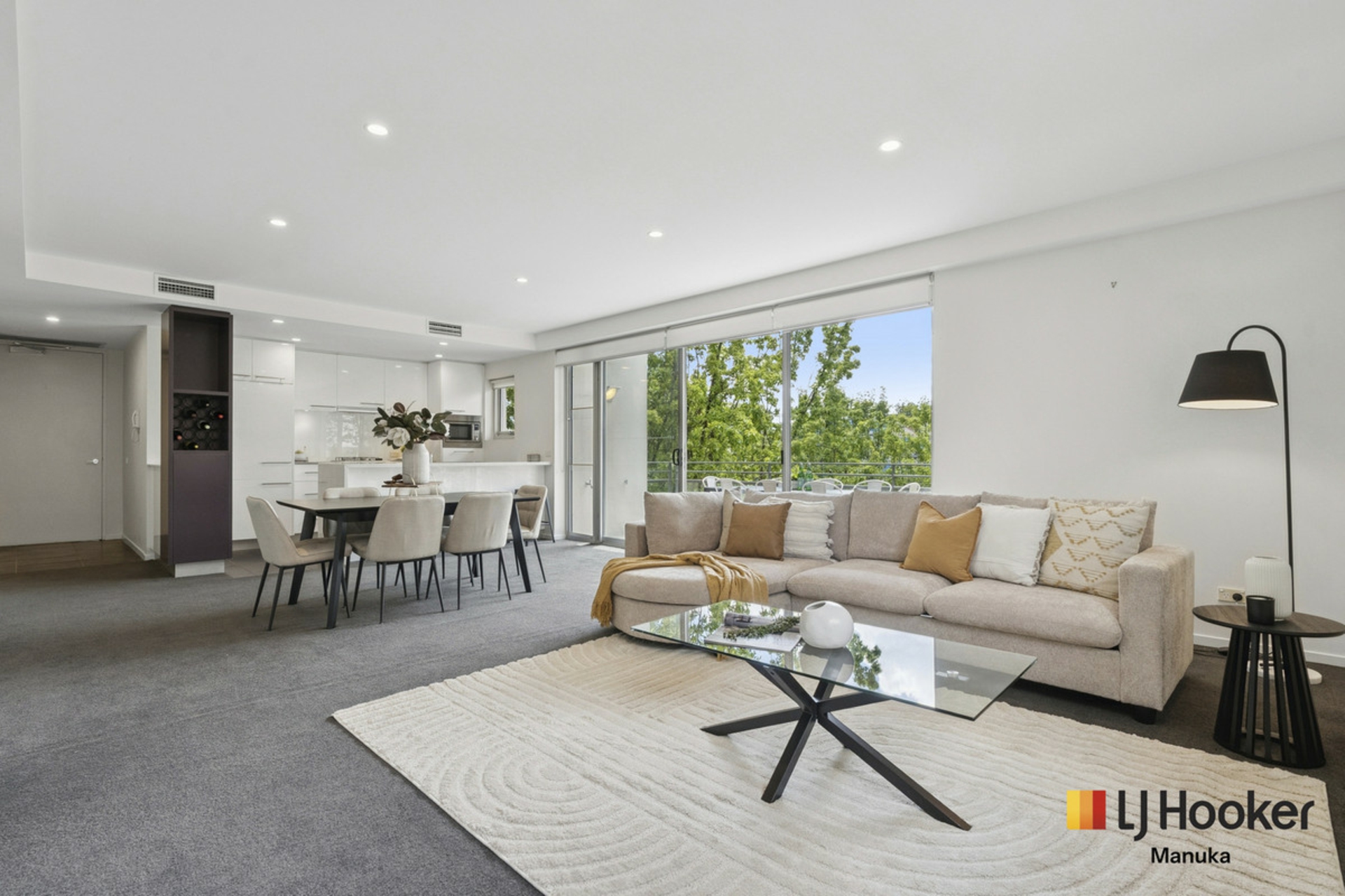 Step inside to a defined entry hallway that opens into a generous open-plan living and dining space. North-facing and overlooking mature trees and the internal courtyard fountain, the outlook feels green, calm and almost retreat-like while still being right in the heart of Kingston.