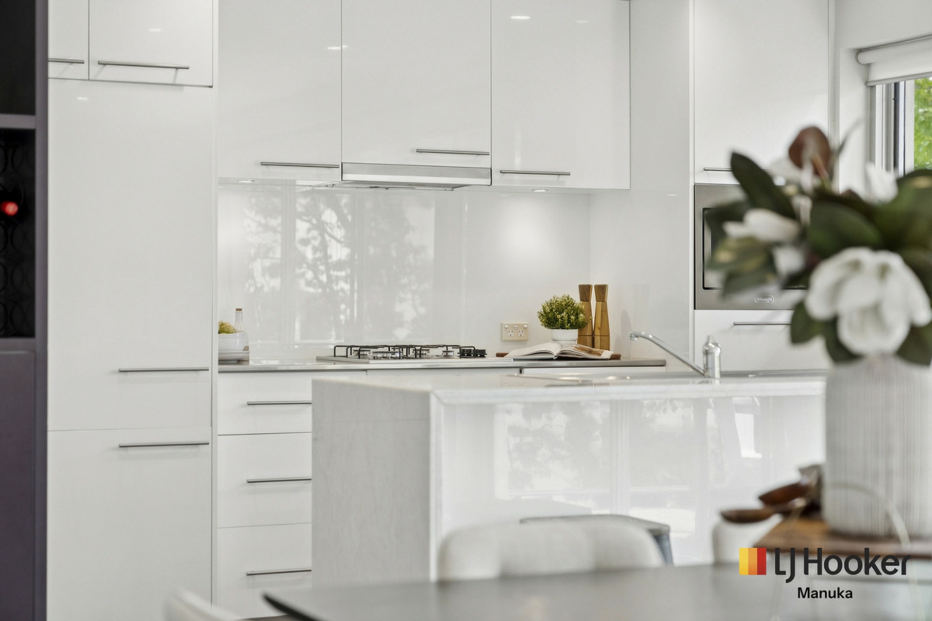 The kitchen is well appointed and functional, with stone benchtops, gas cooktop, quality oven, integrated dishwasher and fridge, along with excellent cabinetry and ample storage.