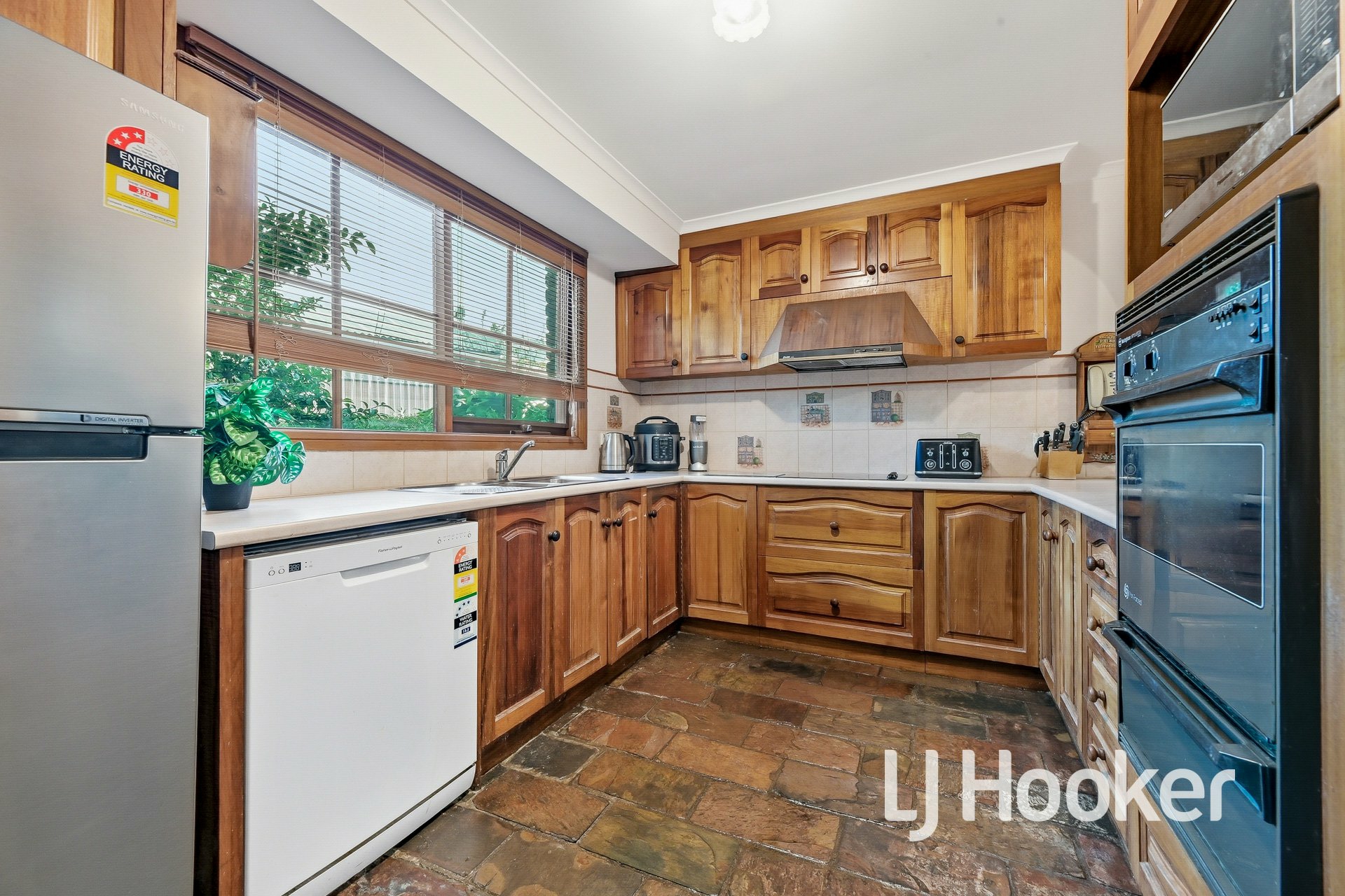 • Kitchen with oven, cooktop, rangehood and dishwasher