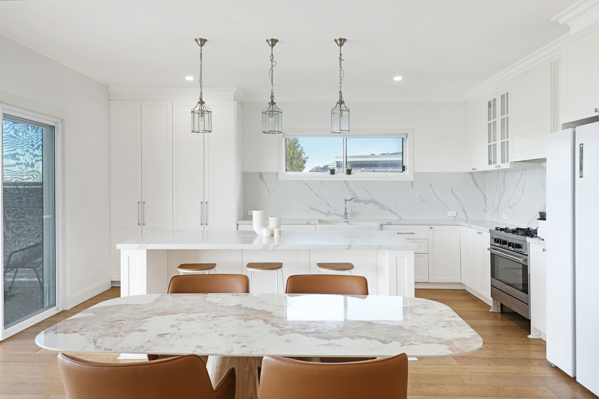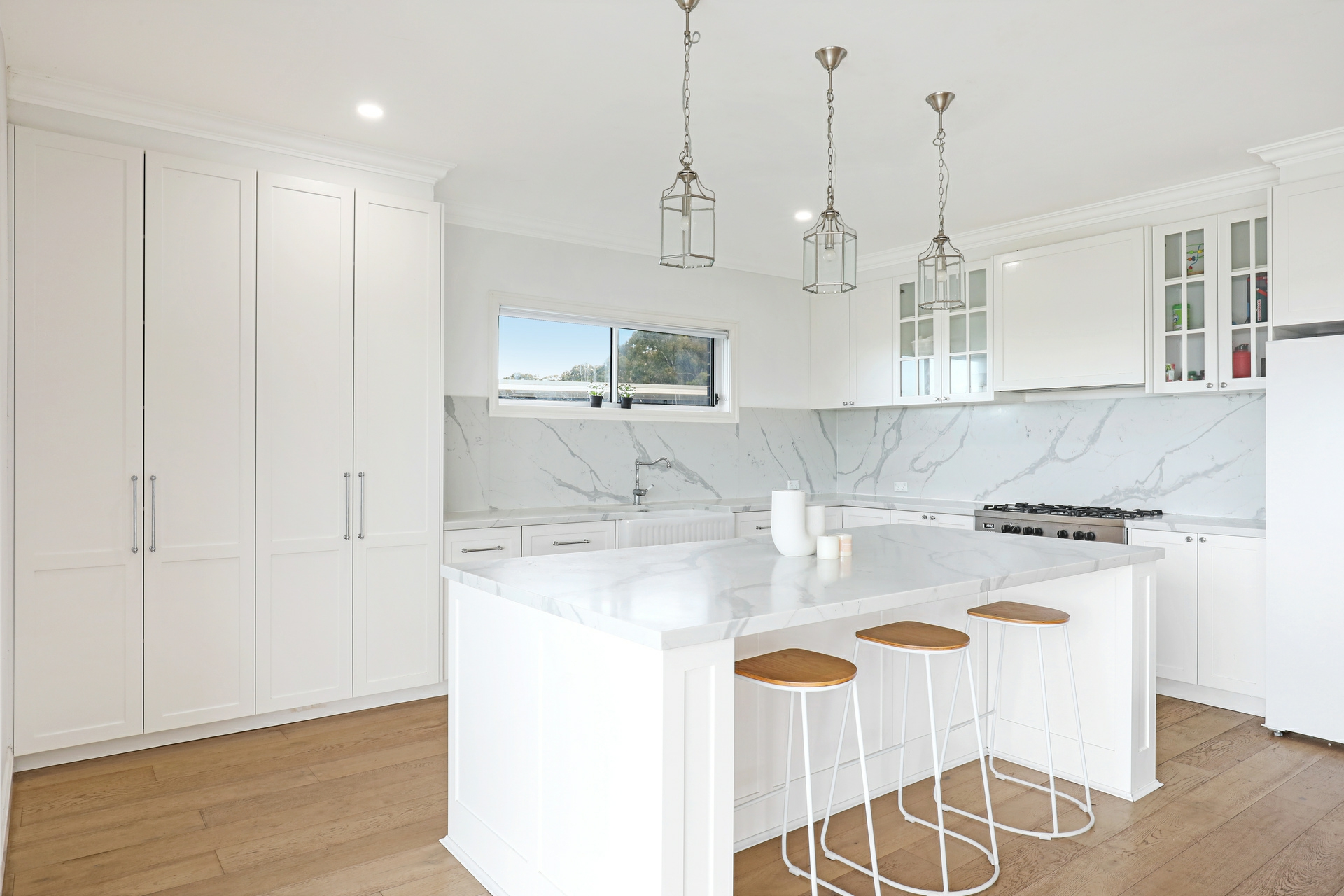 The kitchen sits at the centre of it all, finished with quality appliances and a large island, combining practicality with a clean, modern aesthetic. Accommodation is well considered, with four bedrooms, including a master suite complete with a walk-in robe and ensuite, while the overall layout offers a balance of space, comfort, and low-maintenance living.