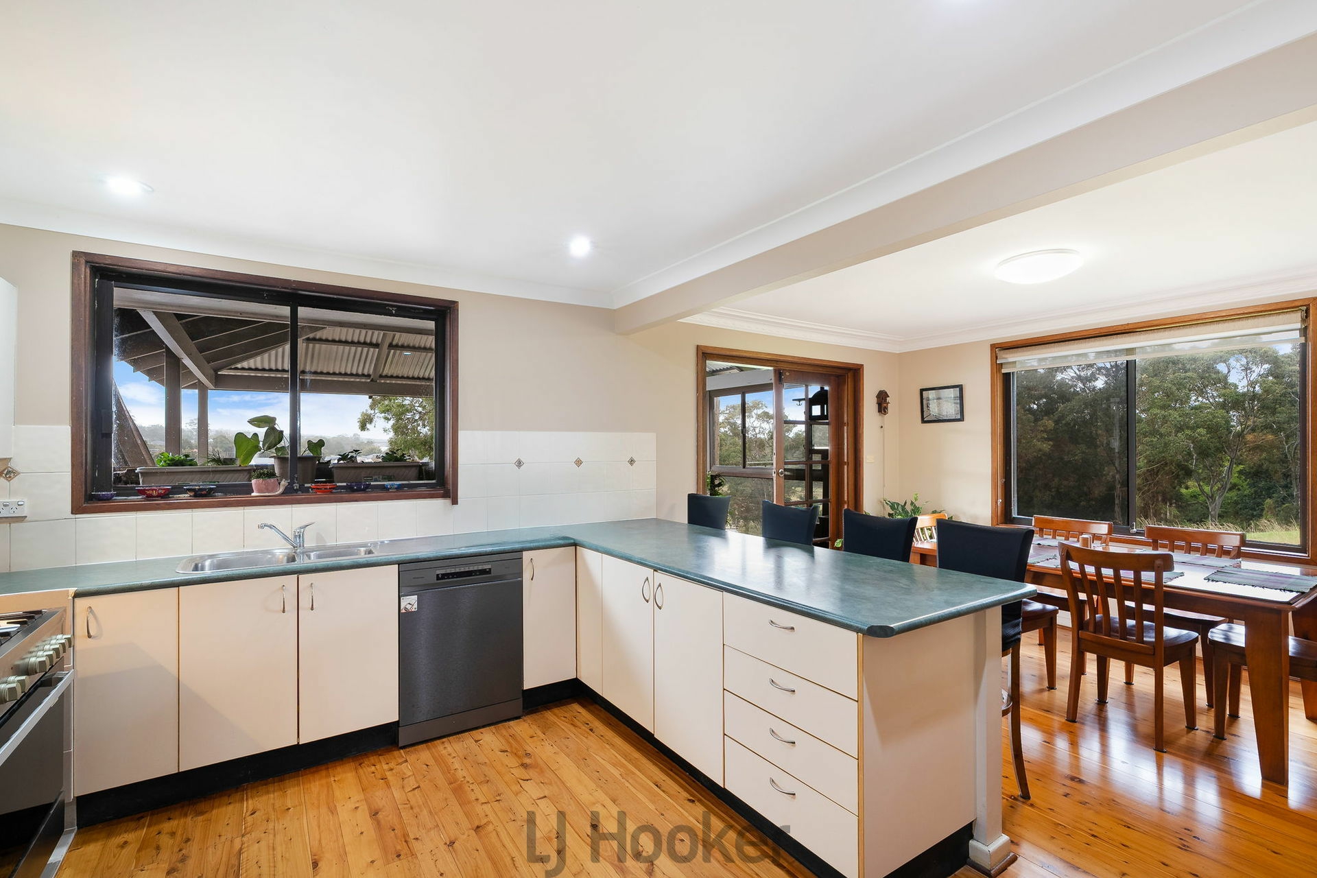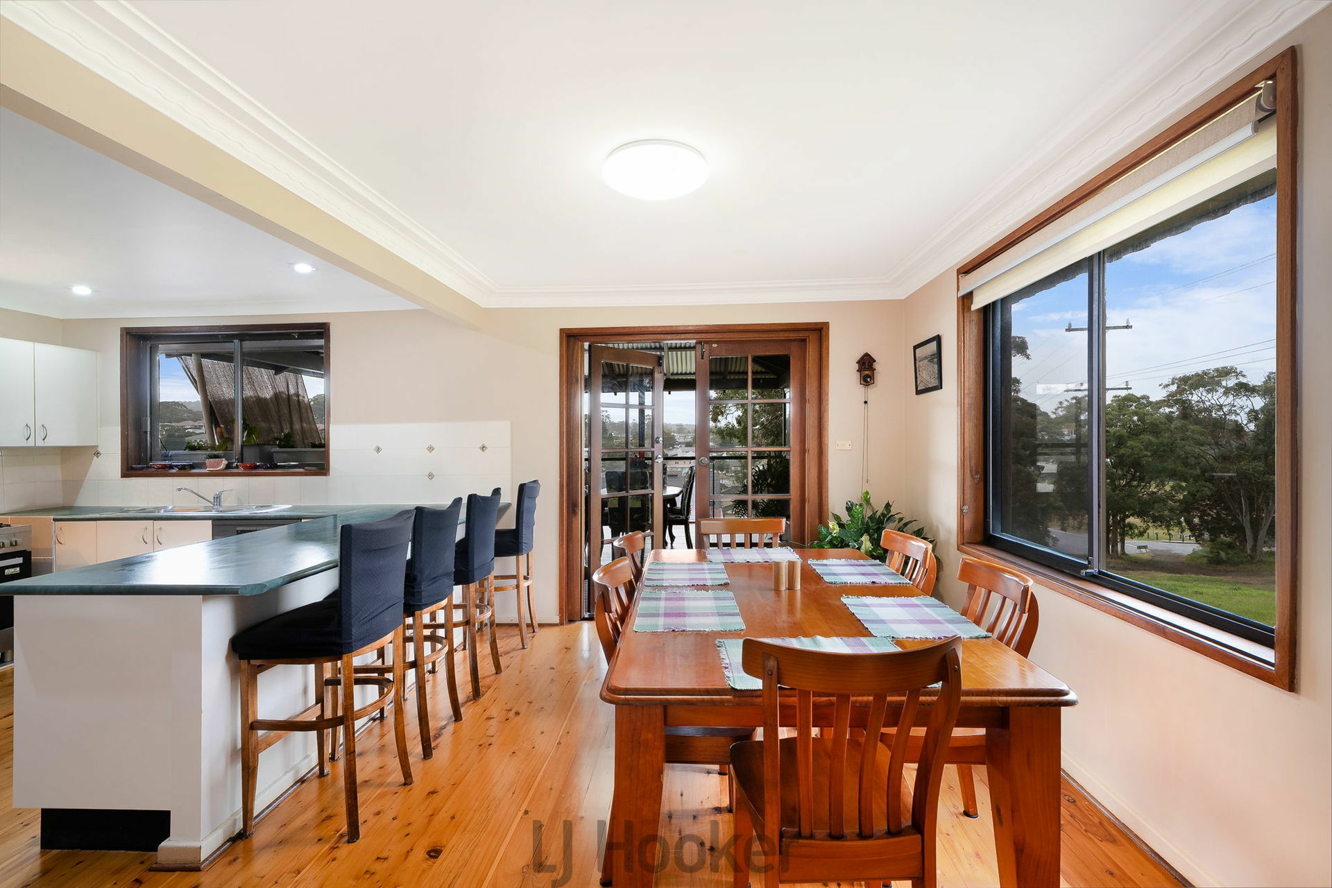 The layout features a well-defined living, kitchen, and dining zone that flows seamlessly onto an undercover decking area, ideal for entertaining while enjoying elevated views.