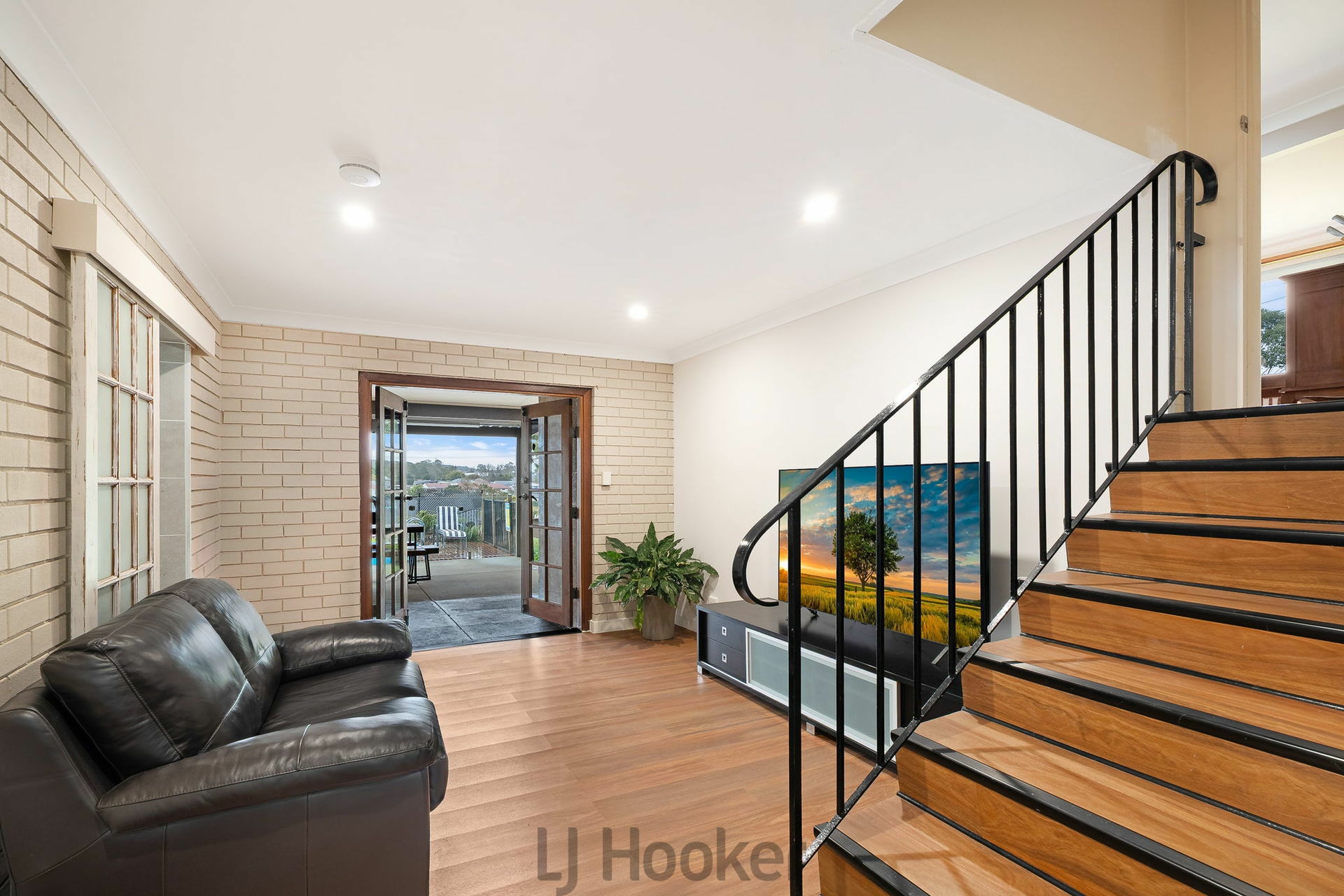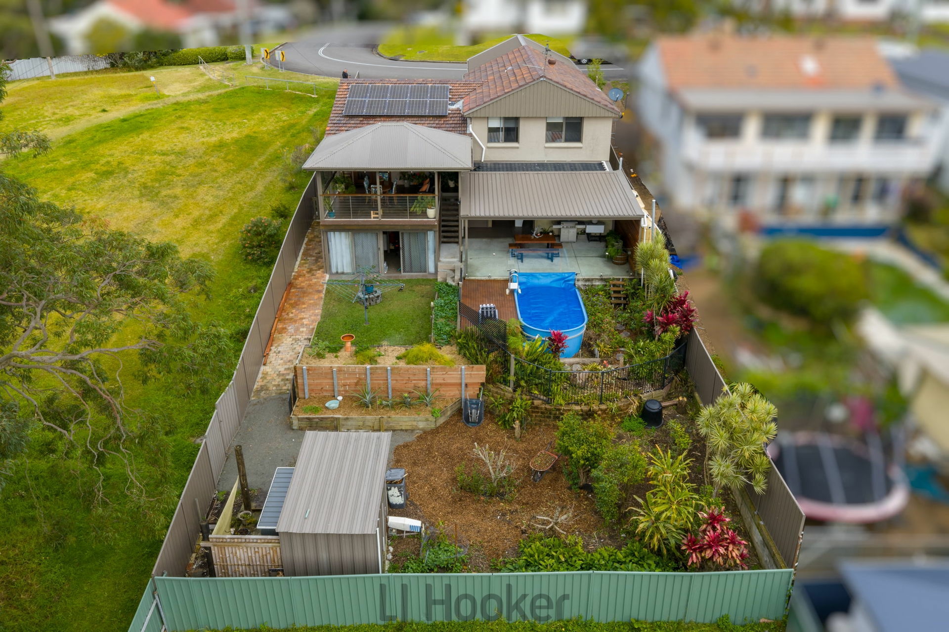 Downstairs, a newly renovated master suite, complete with a private spa and TV fixtures included. This is also complemented by a second living area with charming French doors opening to a covered outdoor entertaining space and an above-ground pool-kept warm with efficient solar heating.