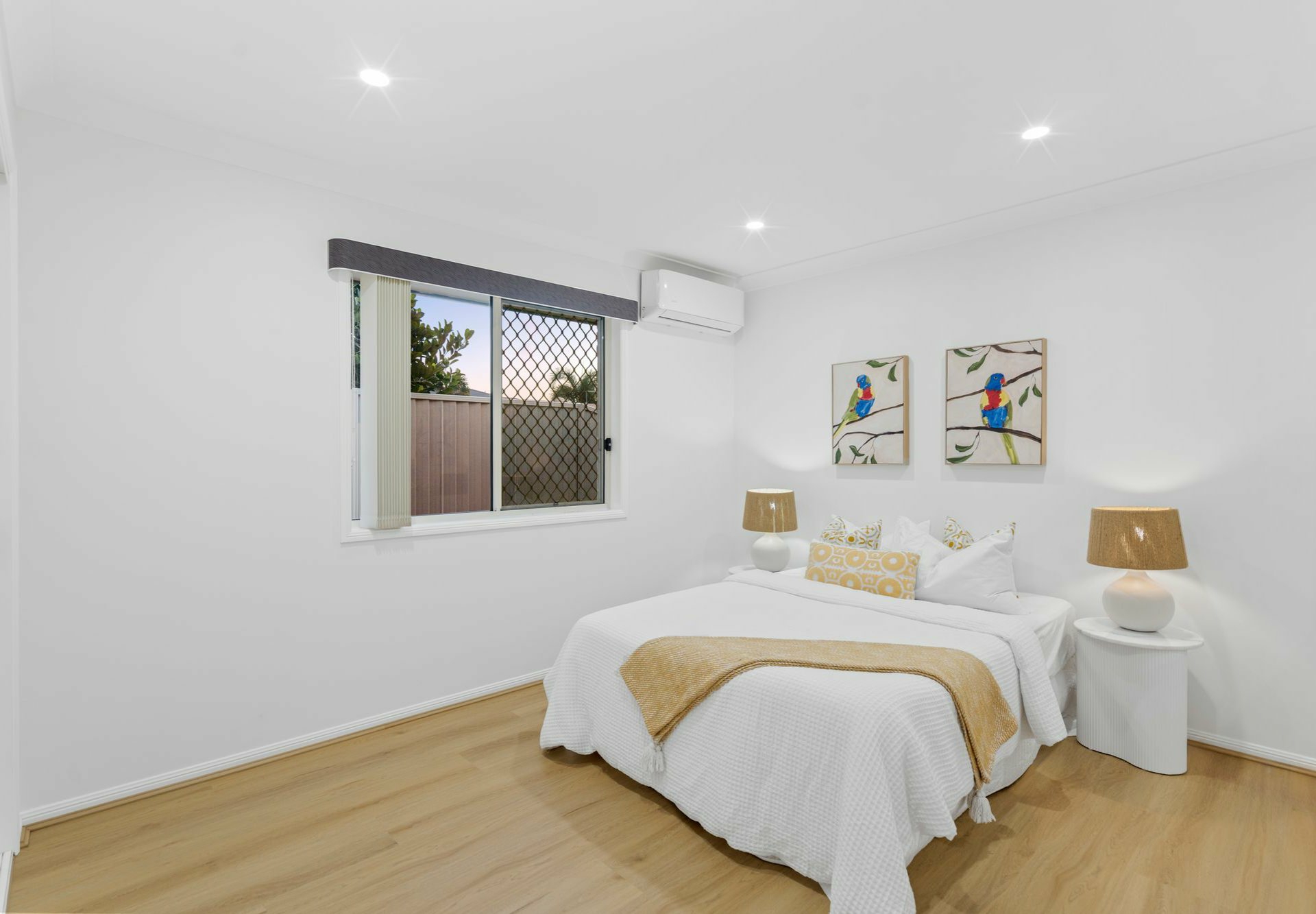 As you explore further, you'll find four generous bedrooms, each a climate-controlled haven with its own air conditioning unit to ensure the perfect night's sleep regardless of the Queensland heat. Privately positioned at the front, the master suite forms a peaceful parents' retreat complete with walk-in robe and ensuite, while at the rear a fully enclosed study offers the ideal work-from-home sanctuary, quietly separated from the main living zones.