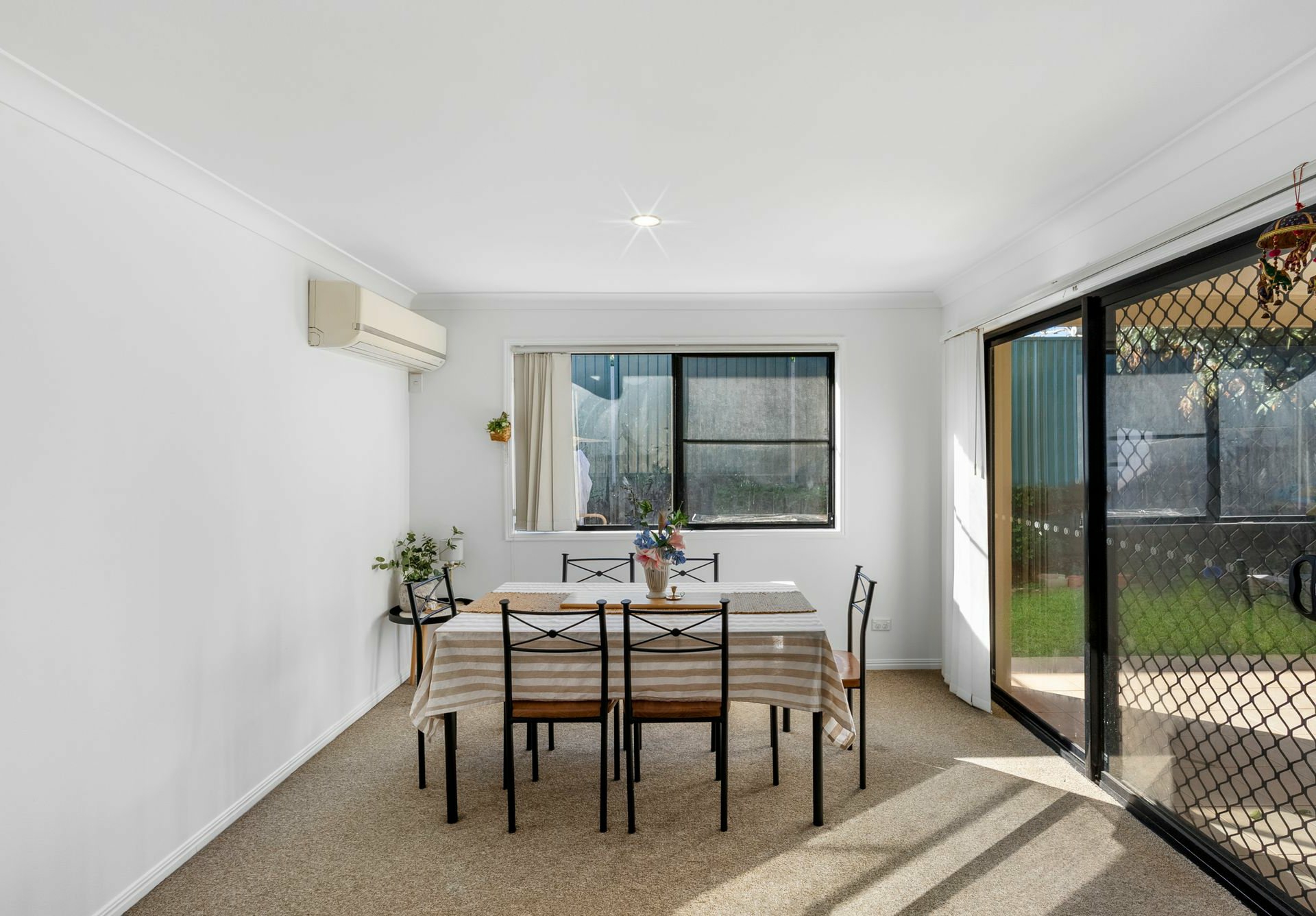 Enter through the tiled foyer and you're eventually greeted by a bright, carpeted lounge and dining area complete with modern downlights and a powerful air conditioner. The large windows and glass sliding doors invite in streams of natural light, creating a calming ambience perfect for unwinding or entertaining. Whether it's a quiet dinner with family or catching up with friends, this open layout makes it easy to enjoy everyday moments.