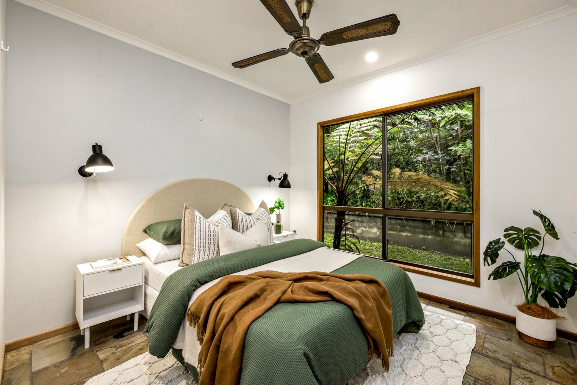 Nestled on a stunning 4,097m² private block in one of Kuranda’s most sought-after streets, this beautifully modernised two-bedroom home is surrounded by lush tropical gardens and framed by a picturesque backdrop. The property delivers privacy, usable land, and room to truly enjoy your natural surrounds.
