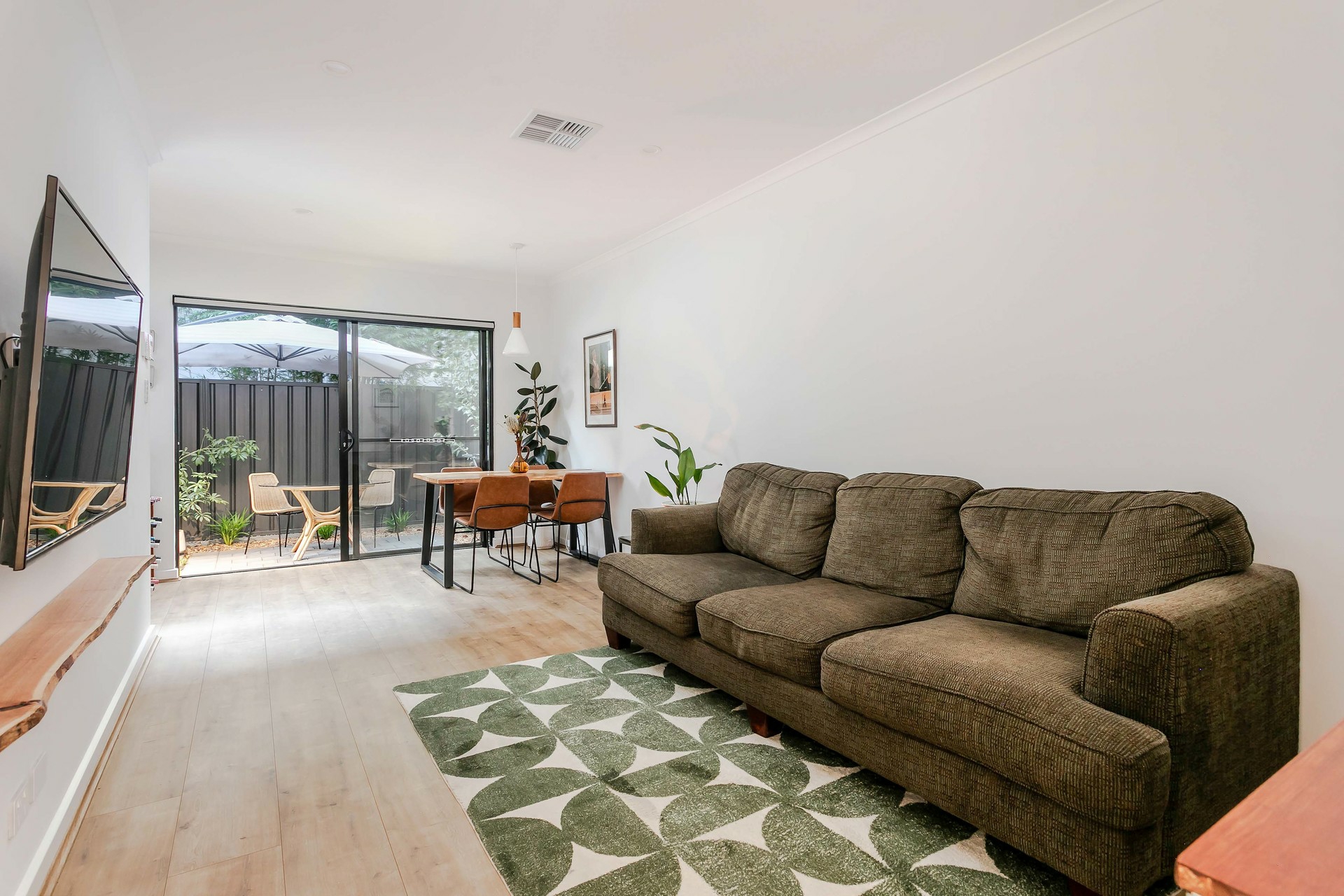 - Open-plan living and dining