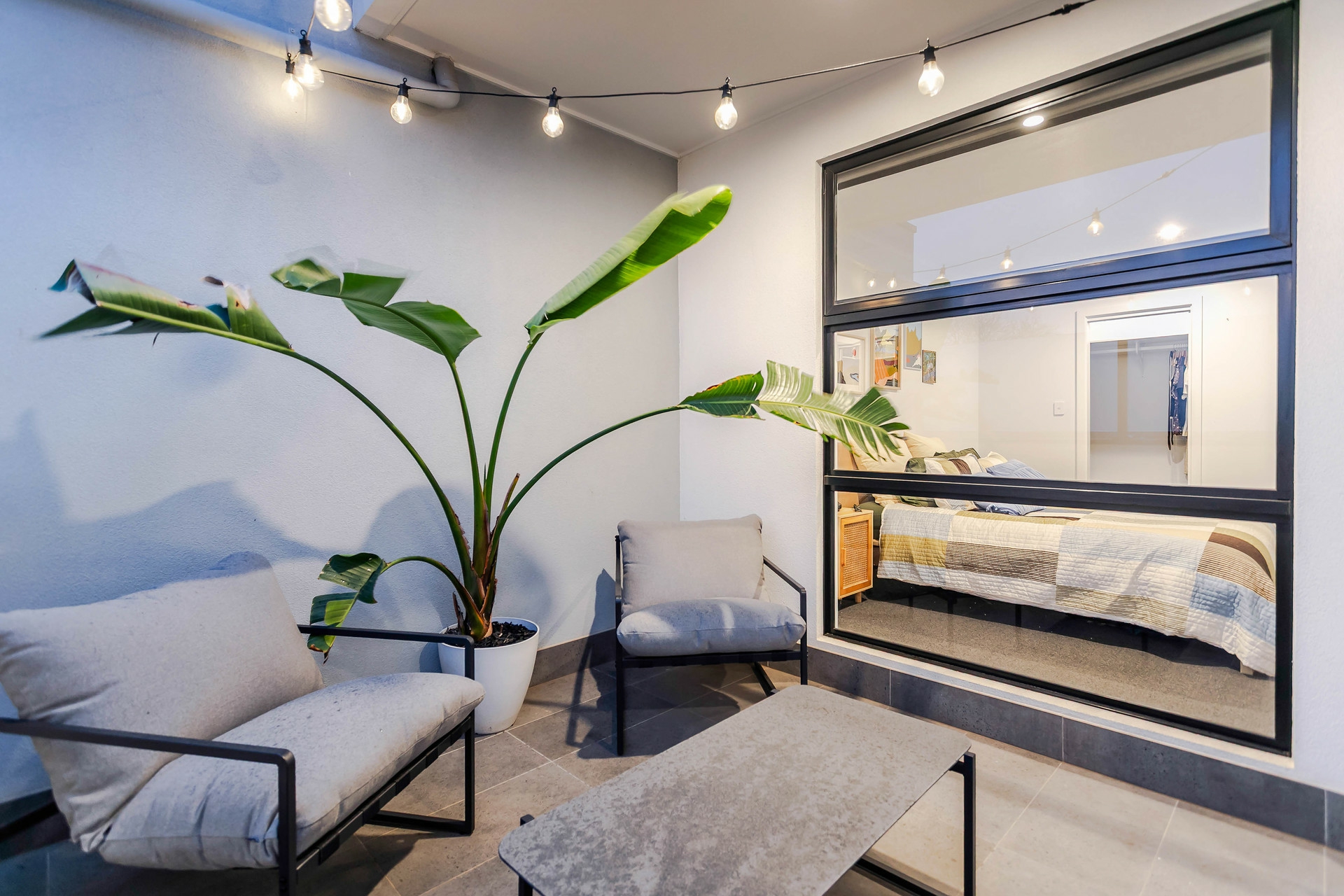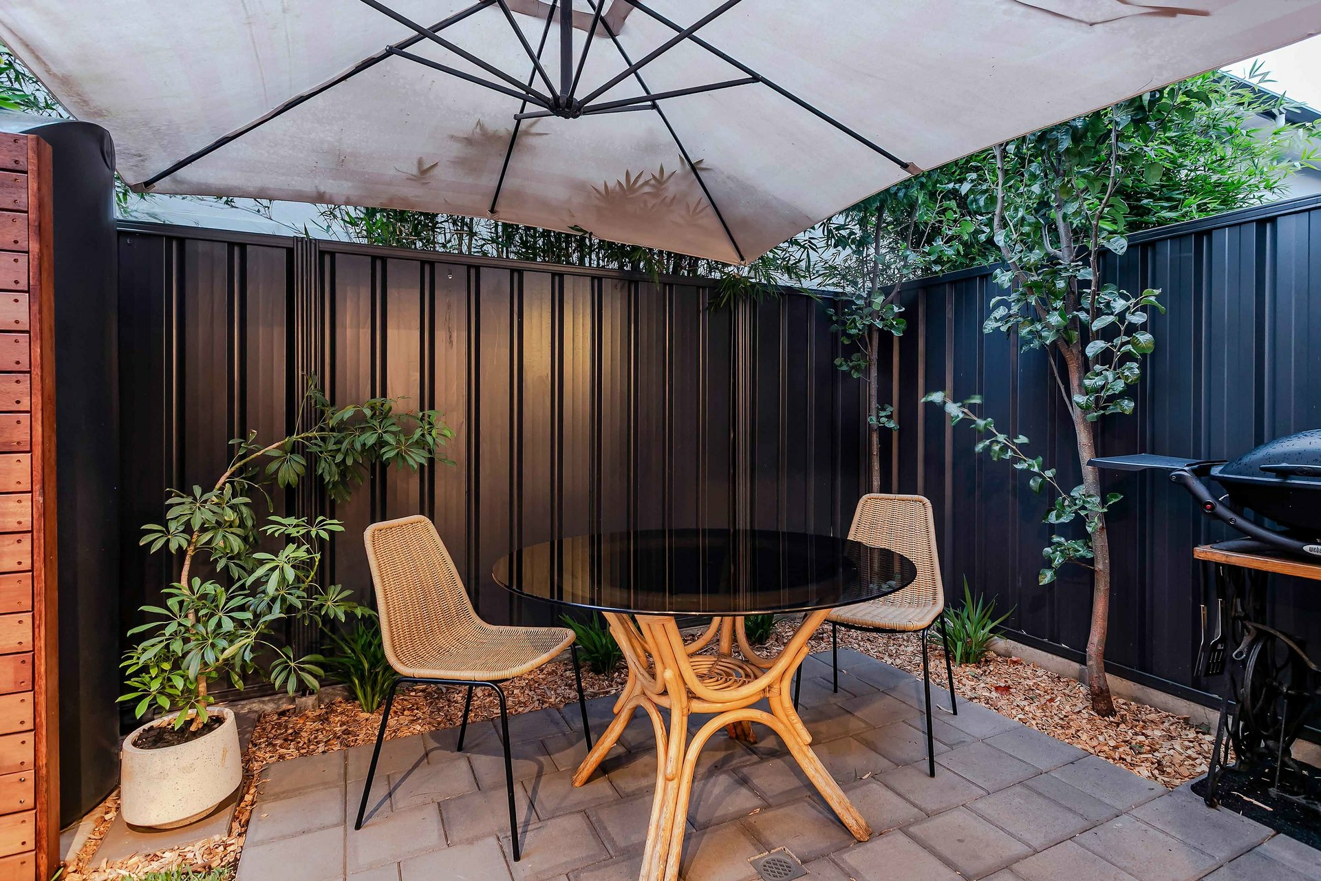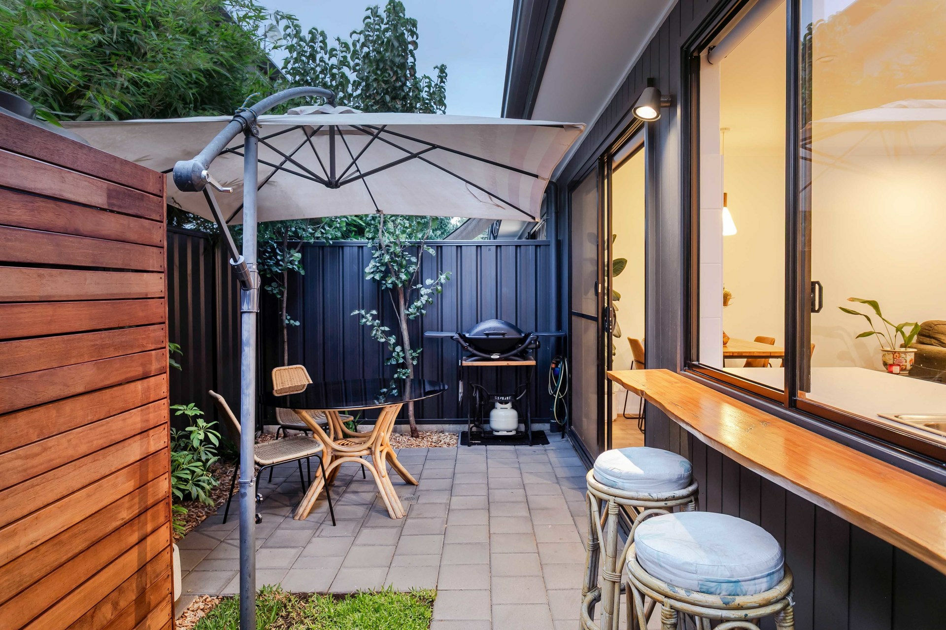 - Tranquil rear courtyard, with kitchen servery window