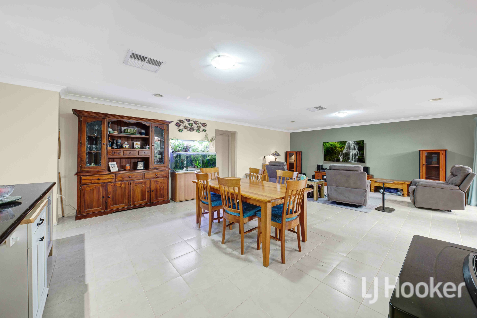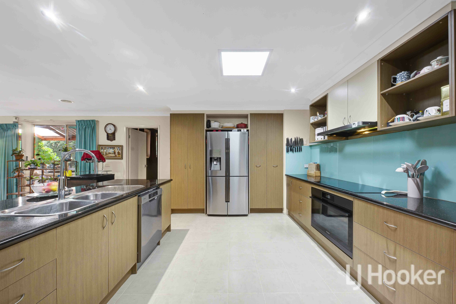 The well-appointed kitchen features quality appliances, ample storage and generous bench space, flowing seamlessly to the outdoor entertaining area for effortless indoor-outdoor living.