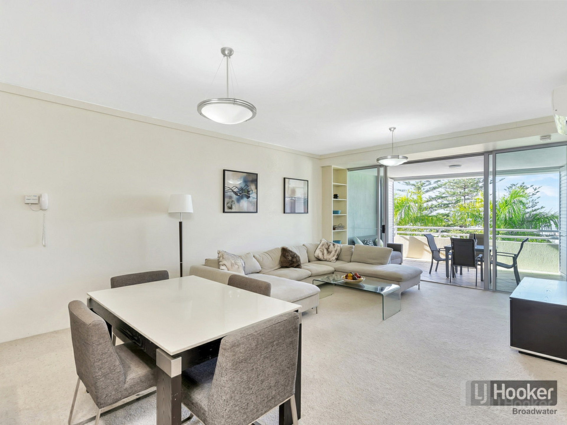 One of the best - Fully furnished and perfectly appointed apartment in a magical location just 50 meters to the world-renowned Broadwater and parklands, features two generously proportioned bedrooms, modern finishes and high ceilings. Designed to seamlessly connect with its surroundings with its sweeping floor to ceiling windows and flowing layout, the residence is filled with natural light and boasts impeccable views of picturesque Broadwater.
