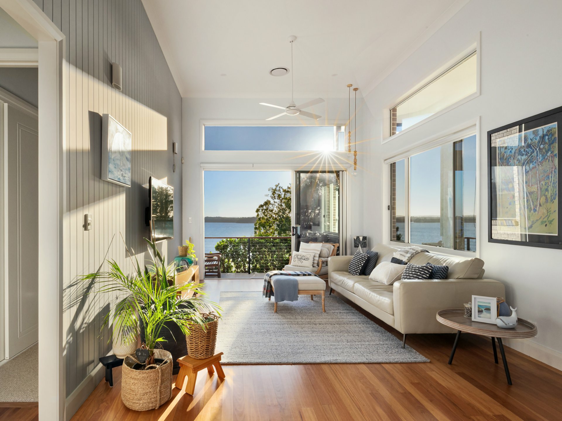 Seamless indoor–outdoor living is on show with covered outdoor entertaining that captures spectacular water views. Outside enjoy a dedicated fire-pit area overlooking the lake—an idyllic spot to unwind & take in the serenity.