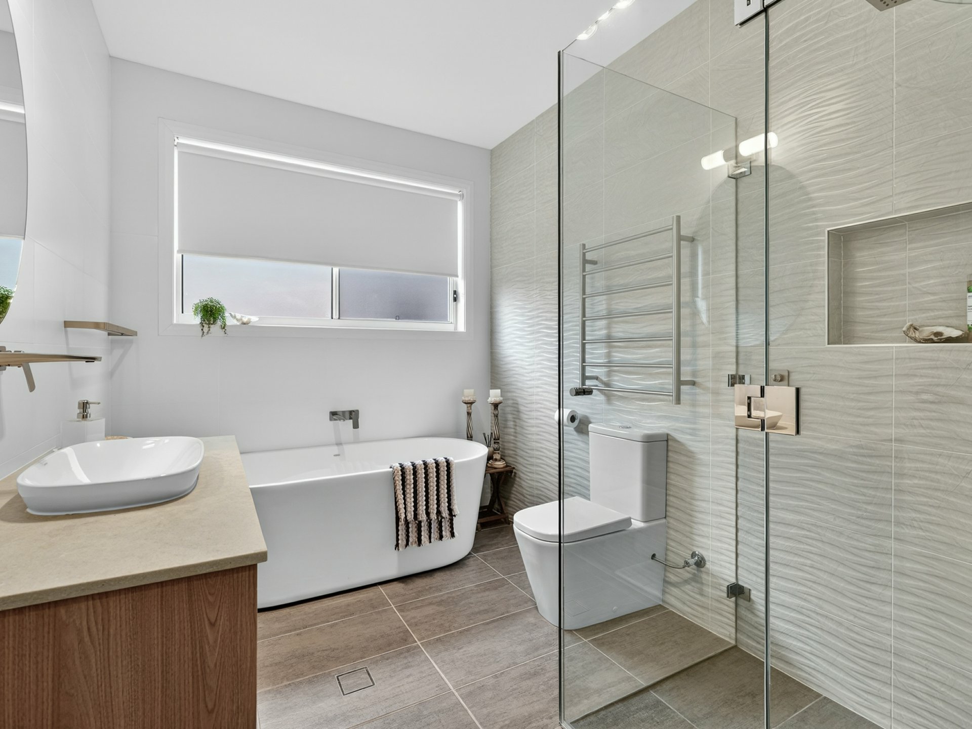 - 2 stylish bathrooms with heated towel rails plus powder room