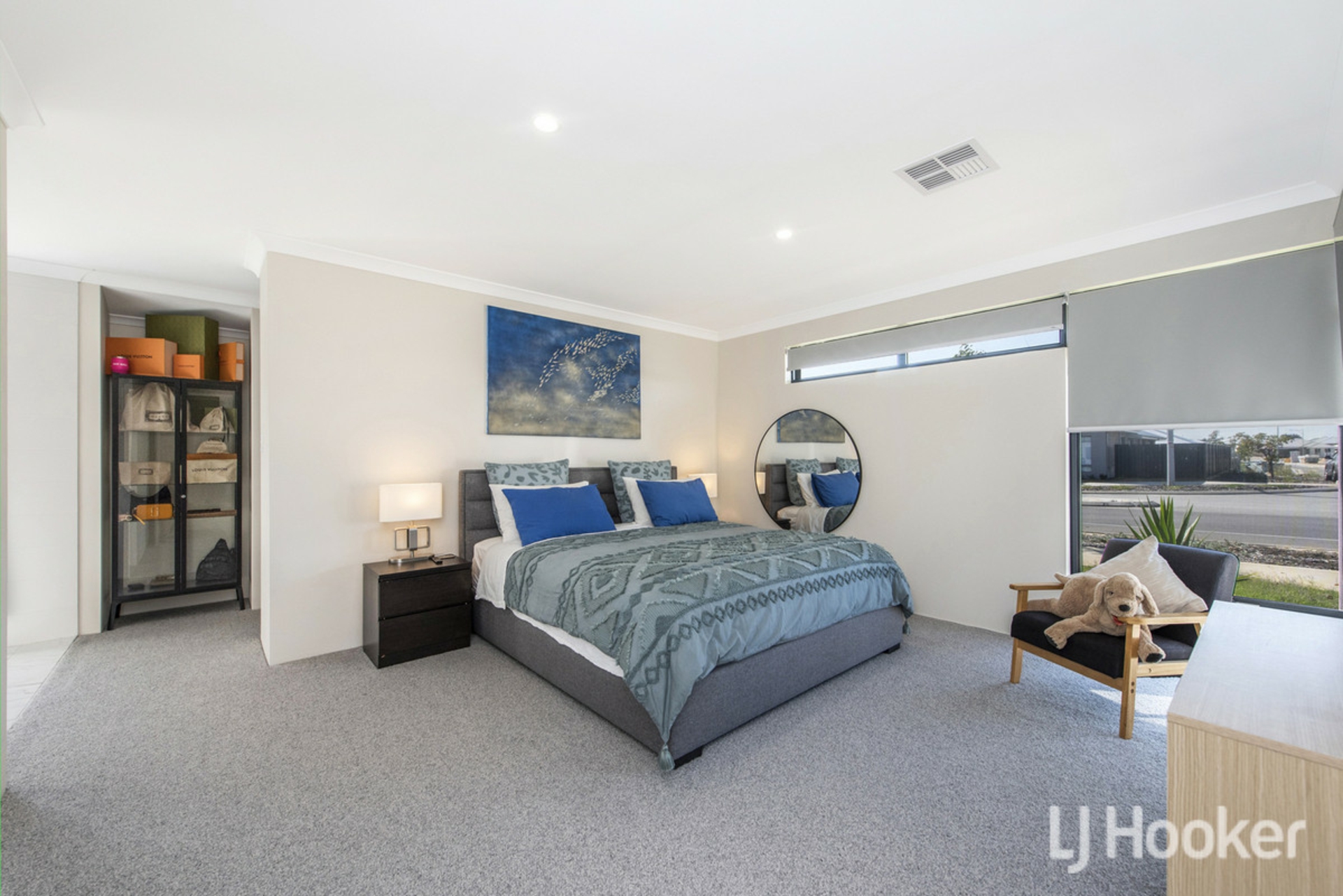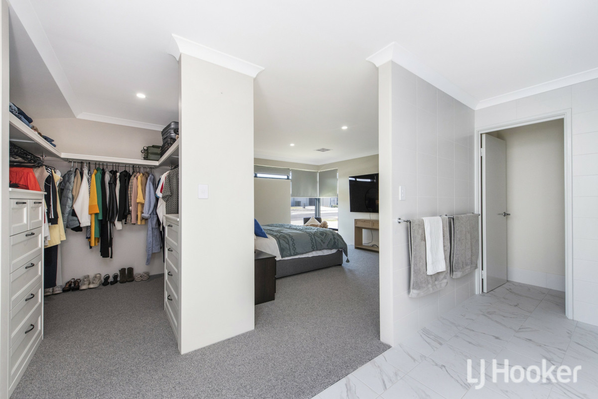 The king sized master suite is a true private retreat, featuring a spacious walk-in robe with ample storage for all your accessories. The open ensuite is beautifully appointed with a walk-in shower featuring a self-cleaning screen, along with elegant his and hers basins.